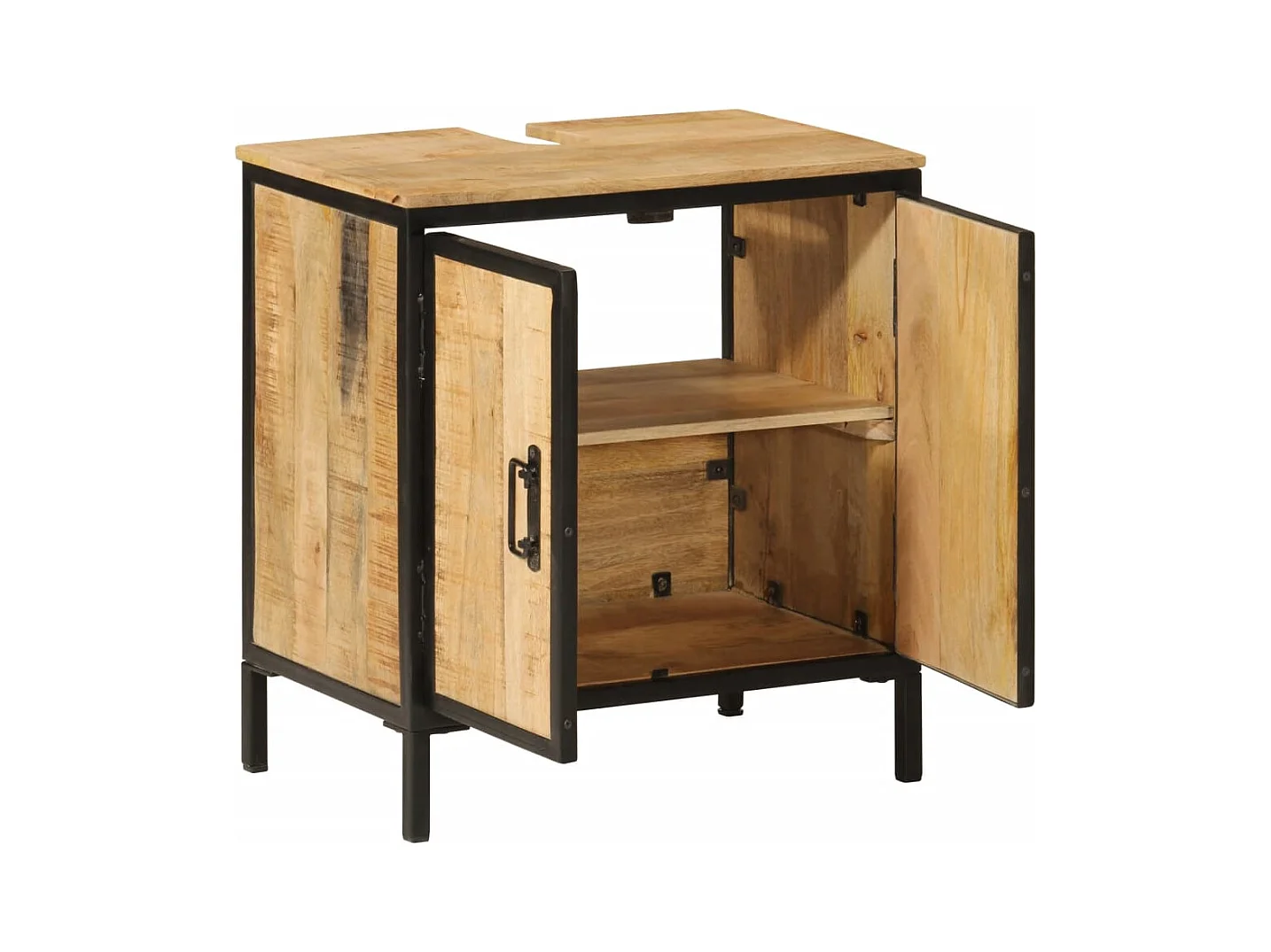 Armoire lavabo de salle de bain bois massif de manguier et fer