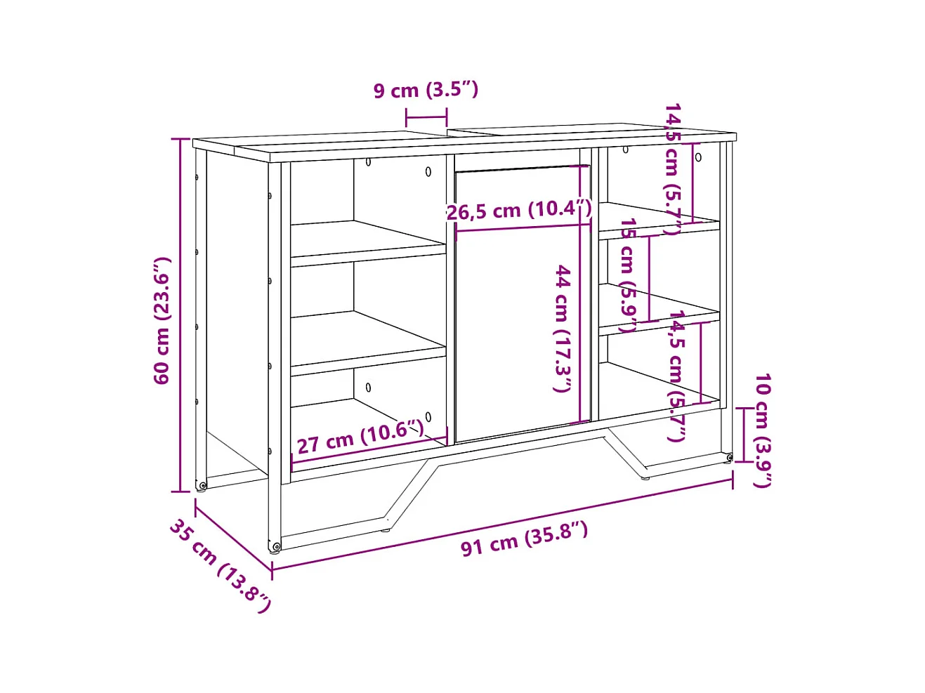 Armoire lavabo de salle de bain chêne sonoma 91x35x60 cm
