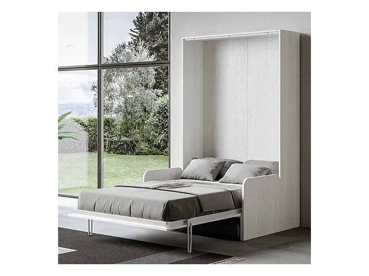 Armoire lit 120x190 avec canapé et colonne de rangement bois blanc Kanto-Couleur Microfibre 16