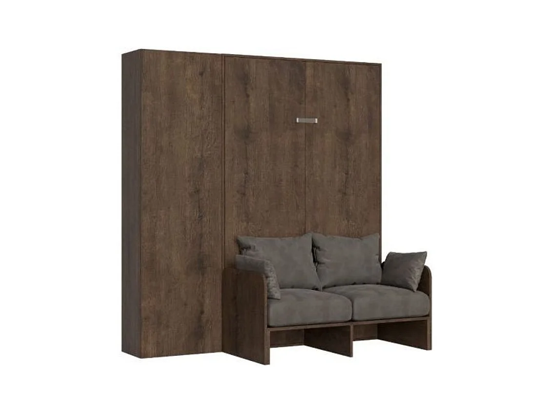 Armoire lit 160x190 avec canapé et colonne de rangement bois noyer Kanto-Couleur Microfibre 05