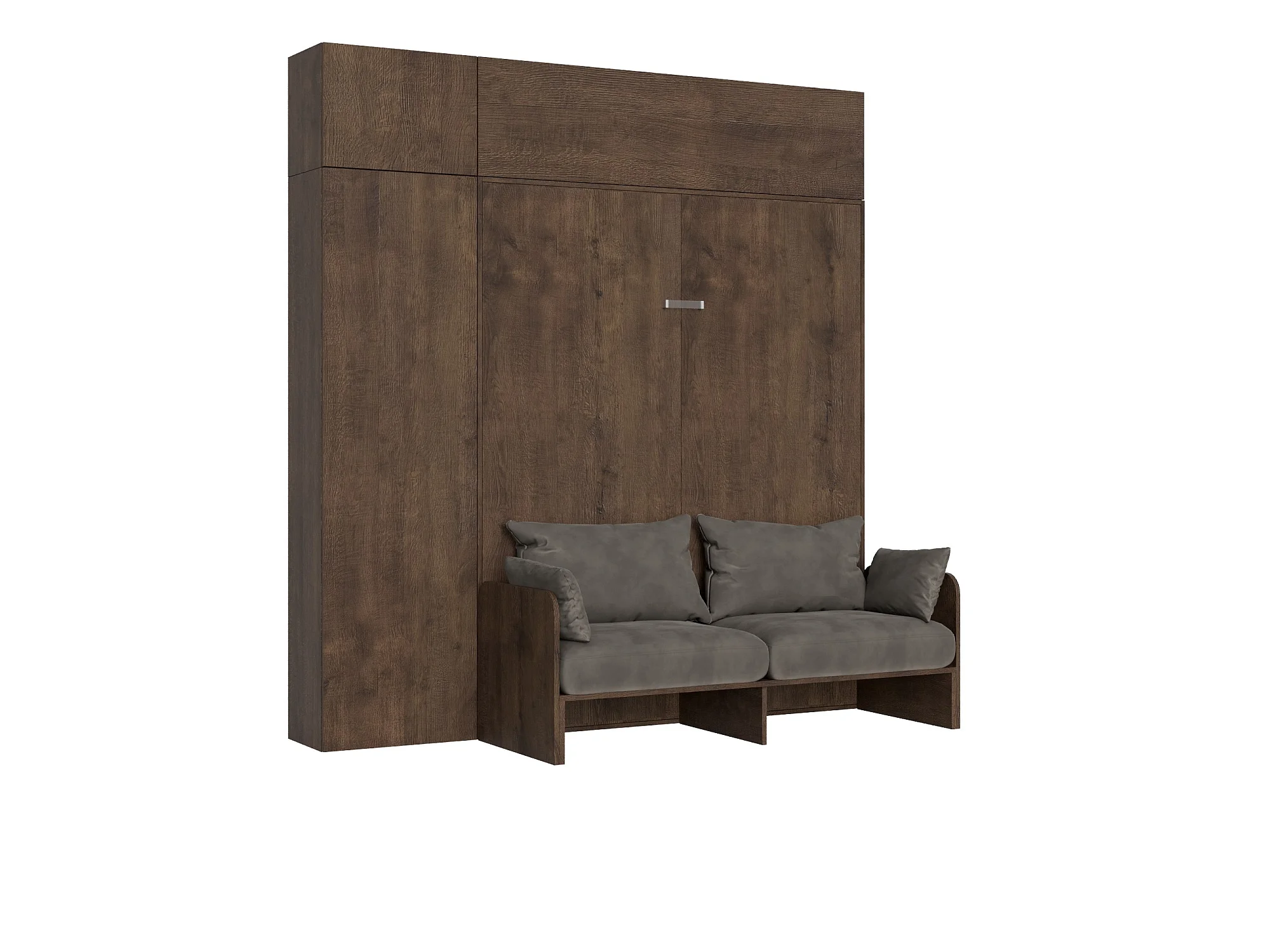 Sofà Kentaro Noce lit double avec colonne élément mural traverse élément mural au-dessus de la colonne
