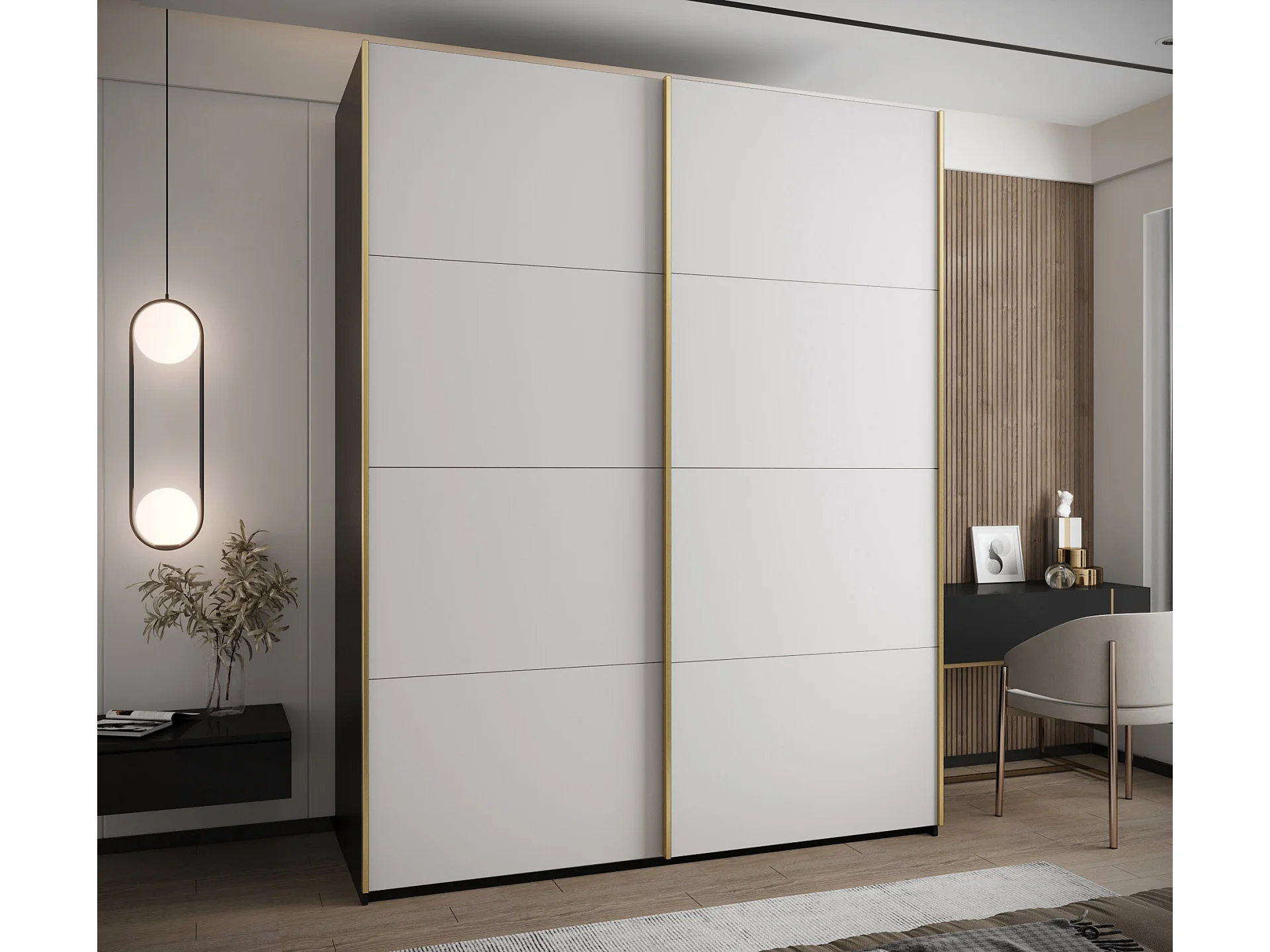 Armoire Lux 2 245,5/200/64 (Noir/Noir/Or)