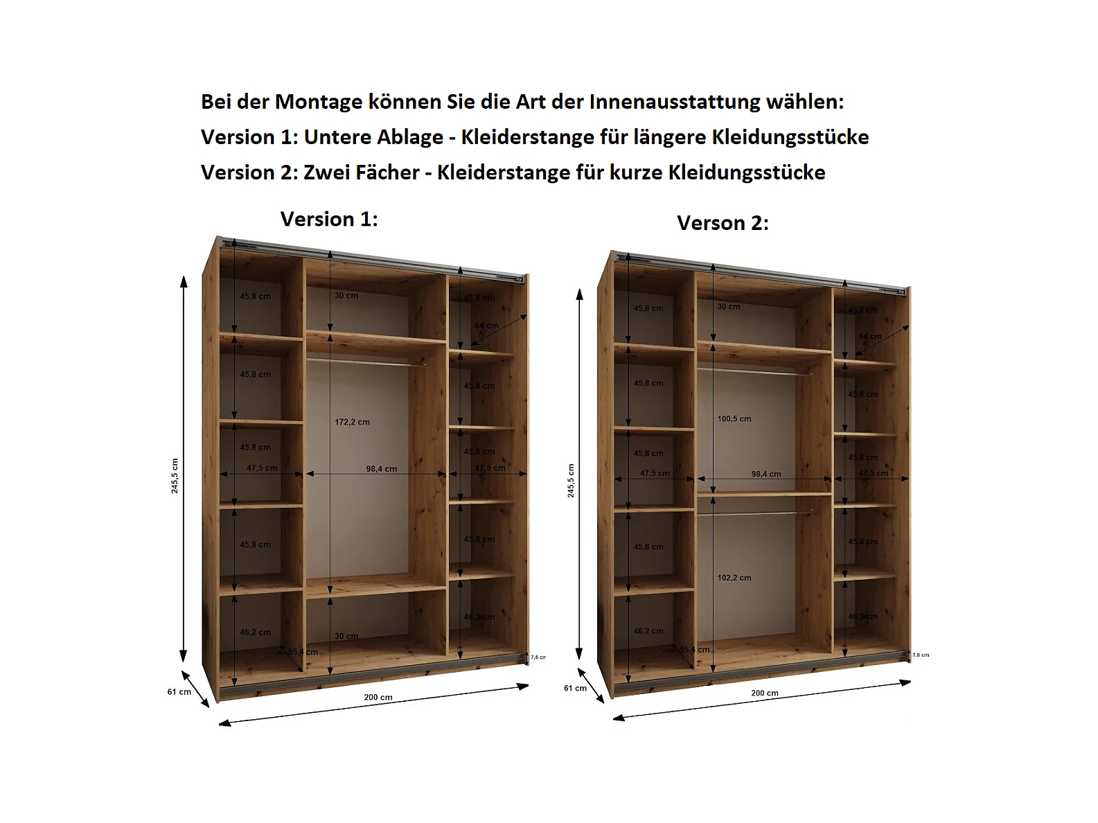 Armoire Lux 2 245,5/200/64 (Noir/Noir/Argent)