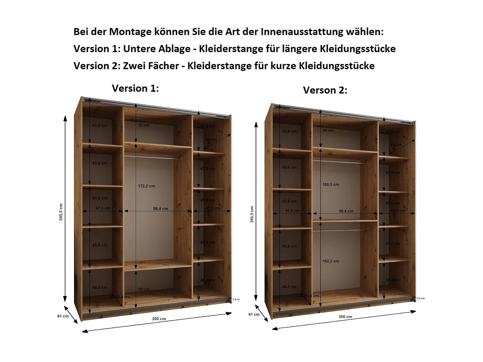 Armoire Lux 2 245,5/200/64 (Artisan/Blanc/Noir)