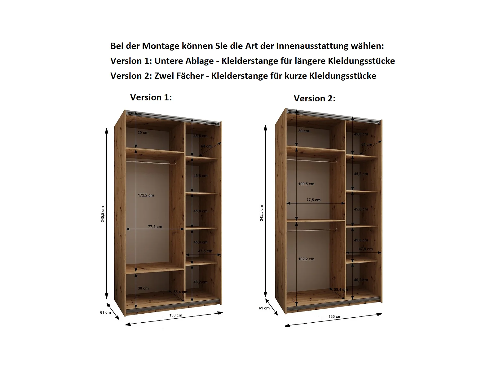 Armoire Lux 2 245,5/130/64 (Noir/Noir/Noir)