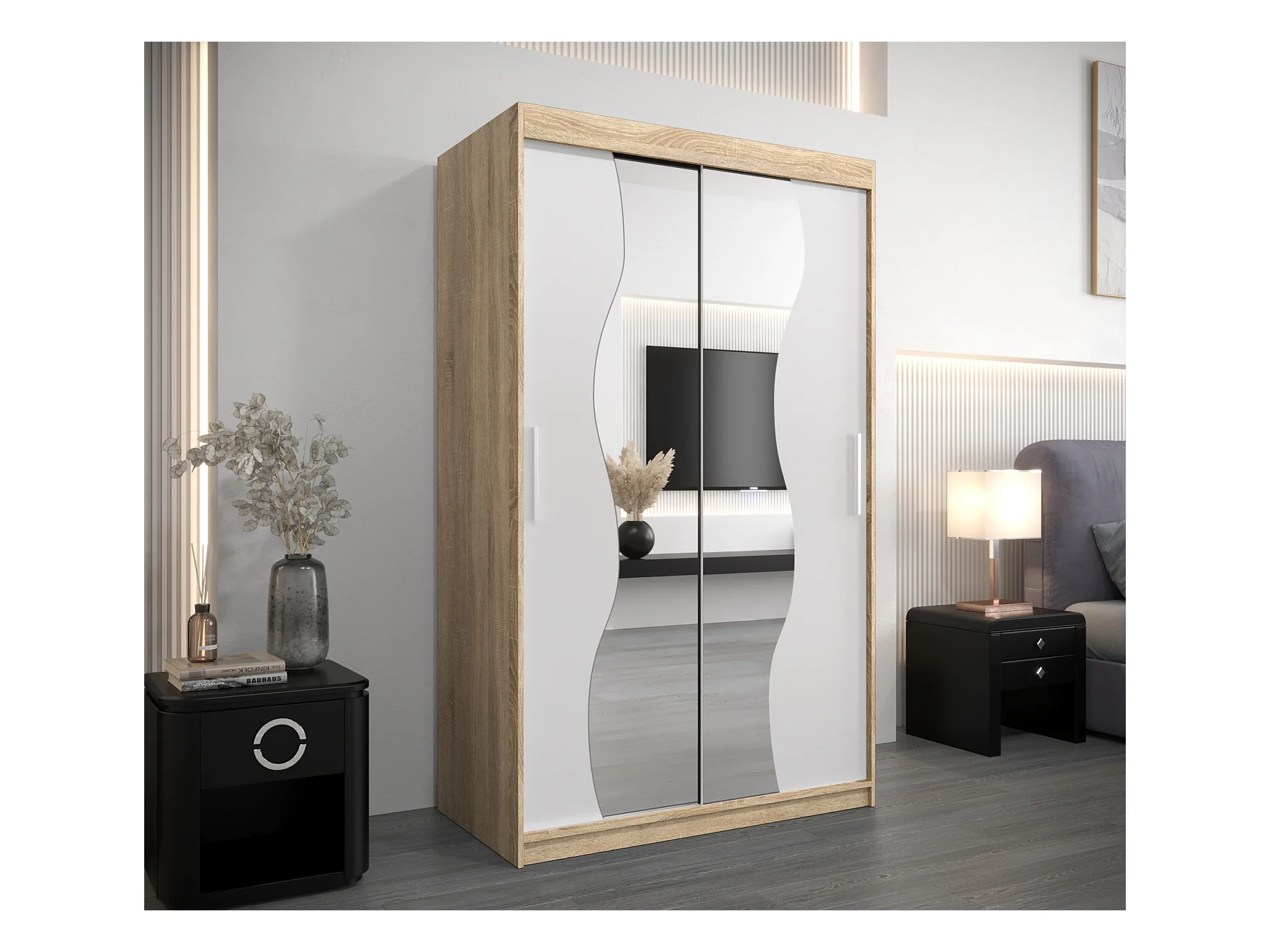 ARMOIRE VERONA 2 À PORTES COULISSANTES 200/120/62 2 Portes (Sonoma/Blanc)