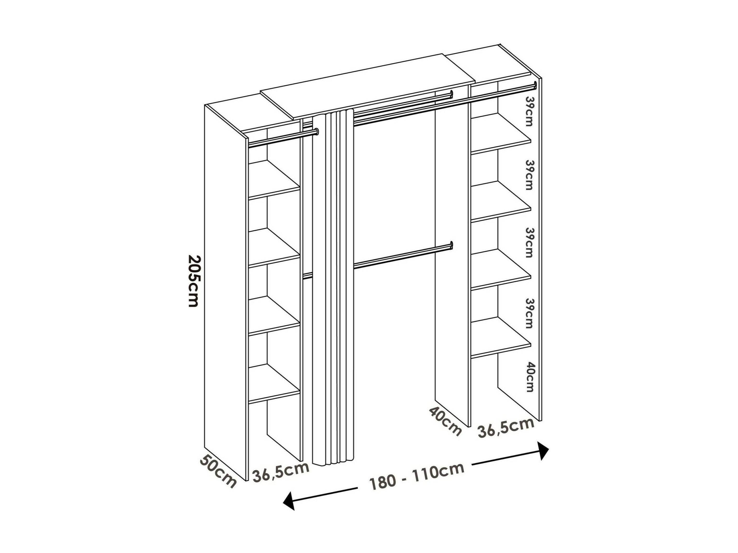 Armoire Manaslu, Structure pour dressing, Cintre ouvert extensible, 180x50h205 cm, Chêne et Gris