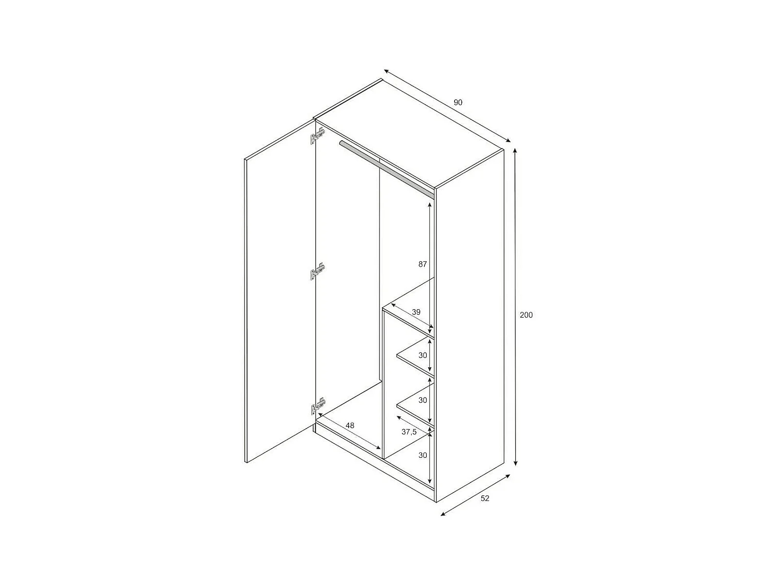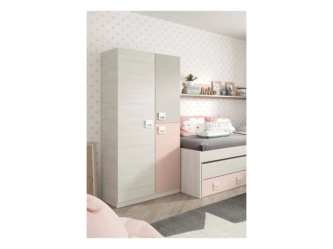 Armoire Manchester, armoire de chambre, armoire avec 3 portes et 3 étagères avec tringle à vêtements, 90x52h200 cm, gris et rose