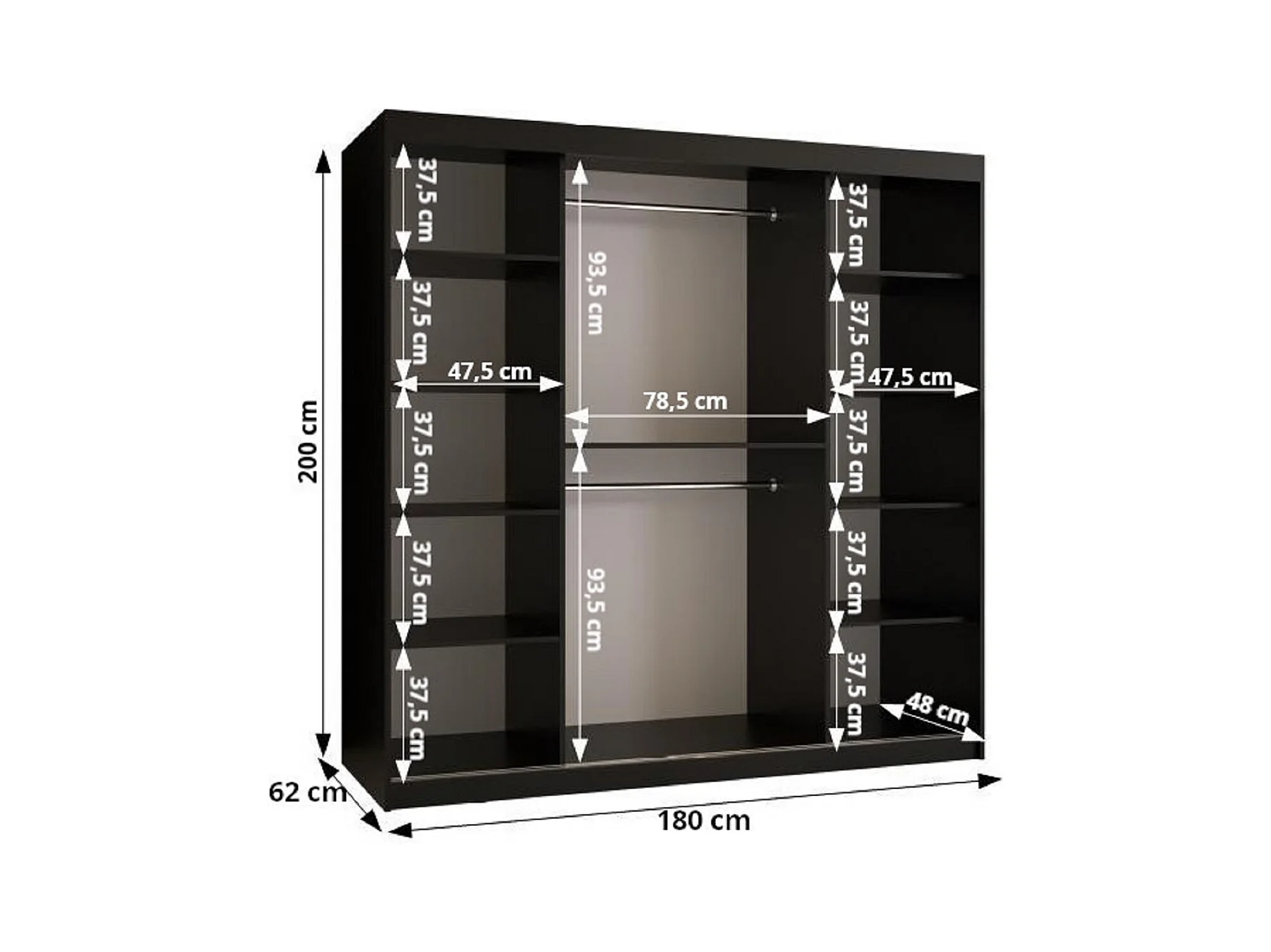 Armoire Marsylia À Portes Coulissantes 200/200/62 2 portes (Noir)