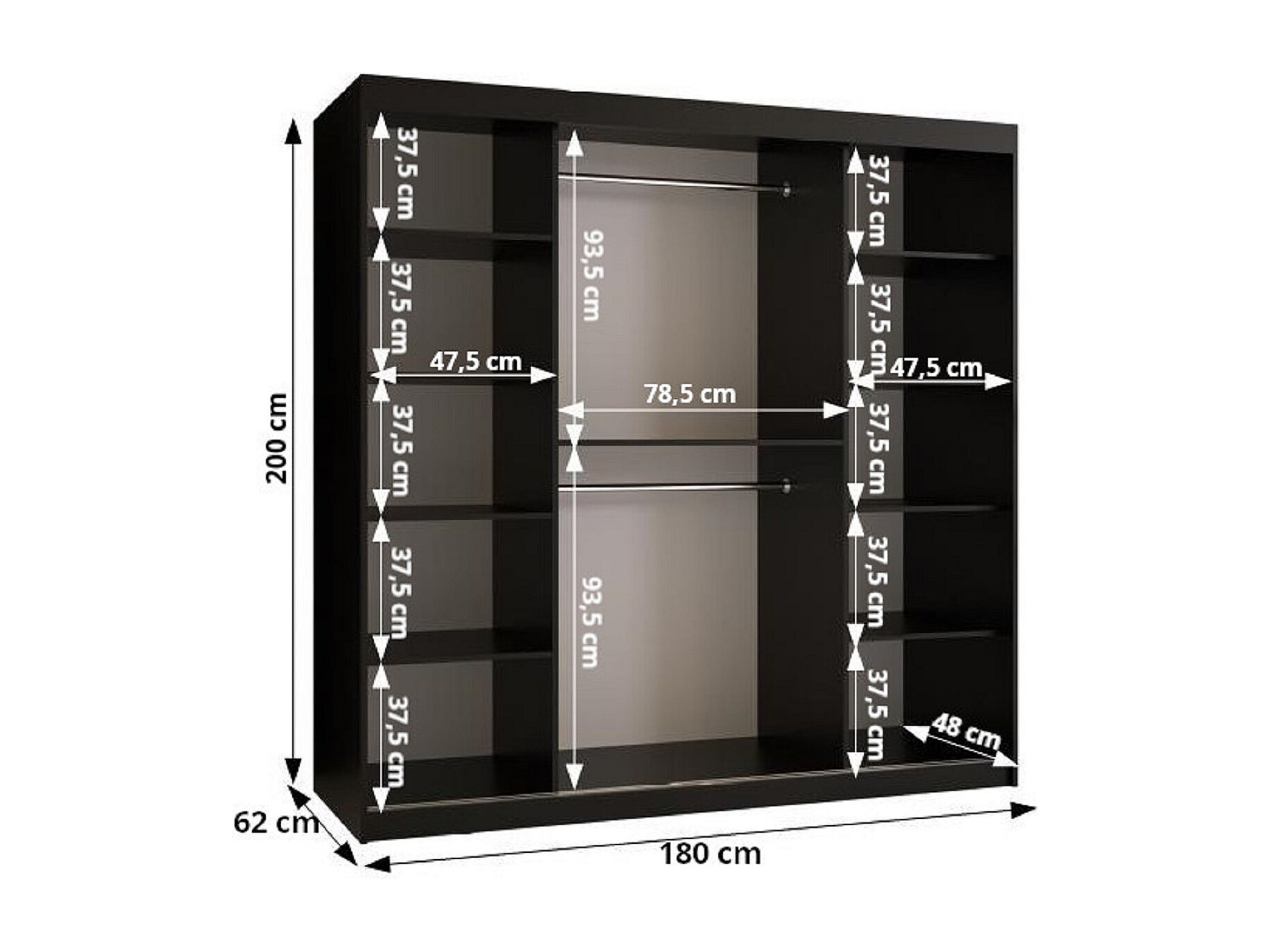 Armoire MARSYLIA 2 À Portes Coulissantes 200/180/62 2 portes (Noir)
