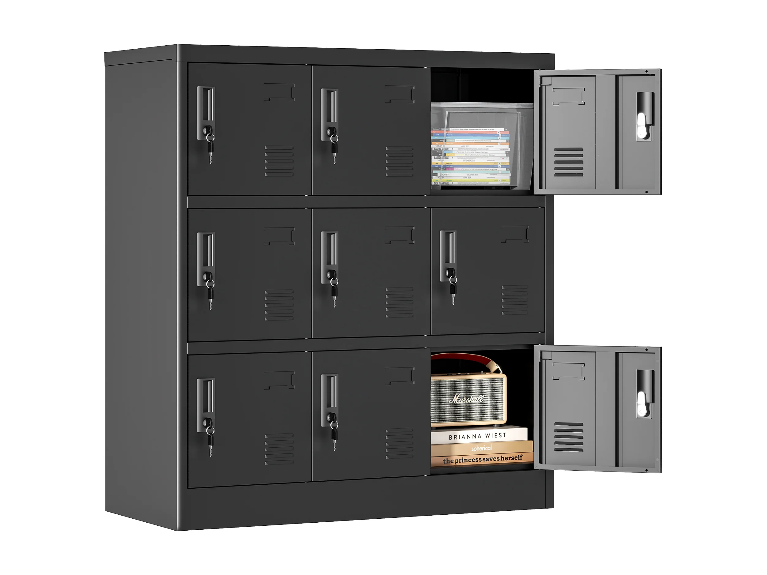 Armoire métallique à 9 portes, casier de rangement sécurisé pour bureau, école, salle de sport, métal, noir (90x40x100 cm)
