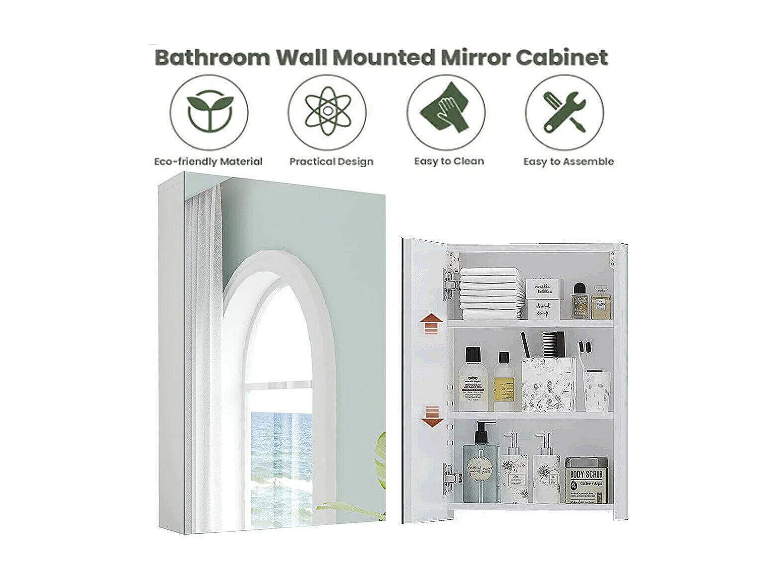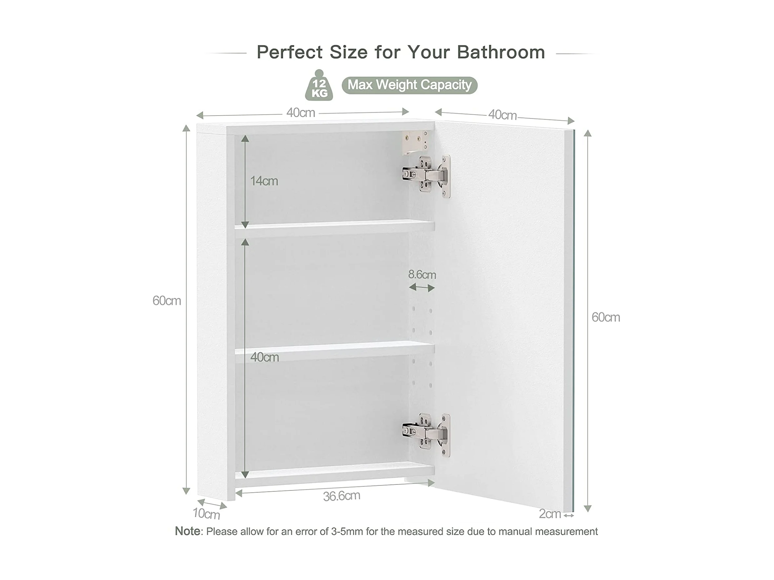 Armoire Miroir de Salle de Bain,Armoire Murale avec Miroir - 3 Étagères - 60x40x12cm - Blanc