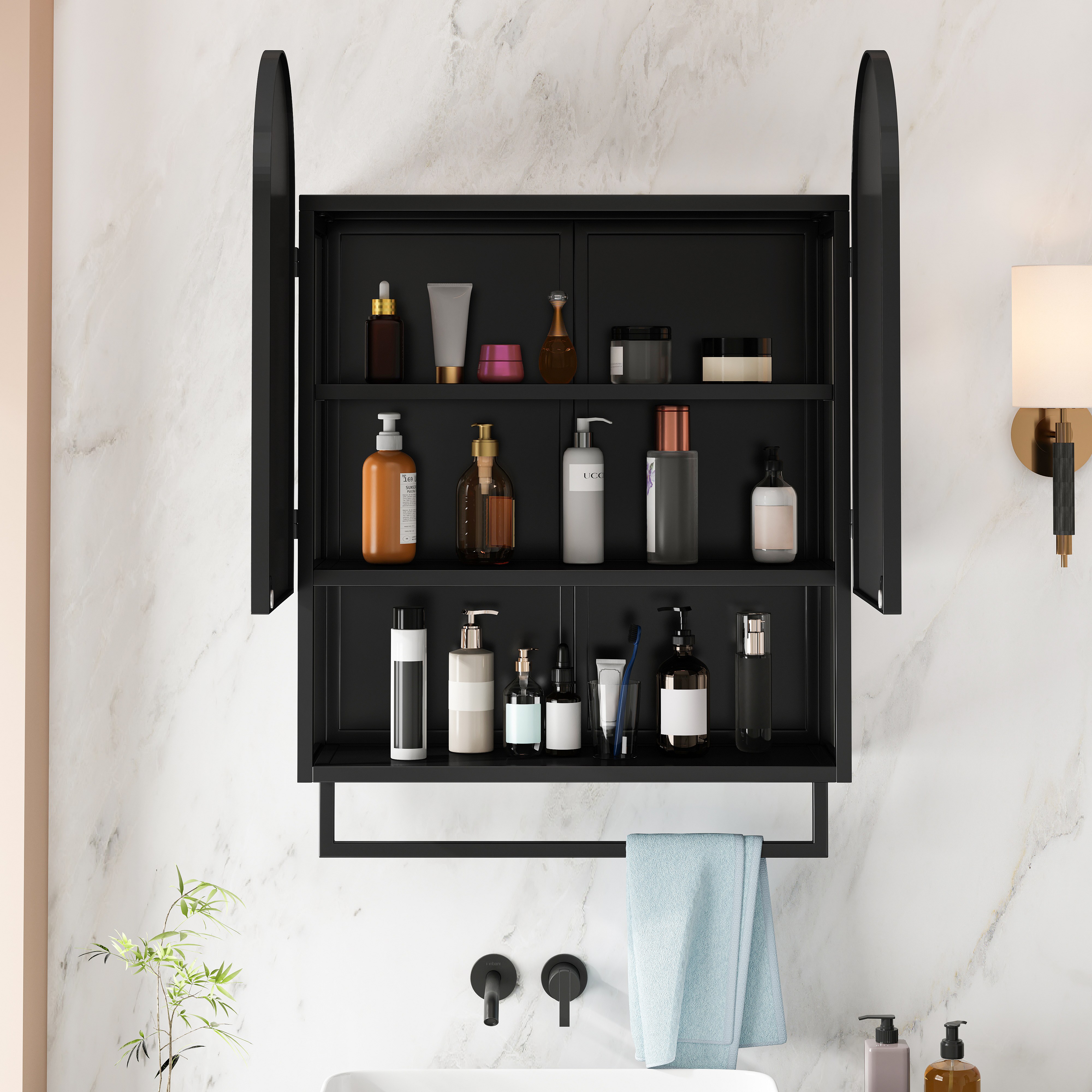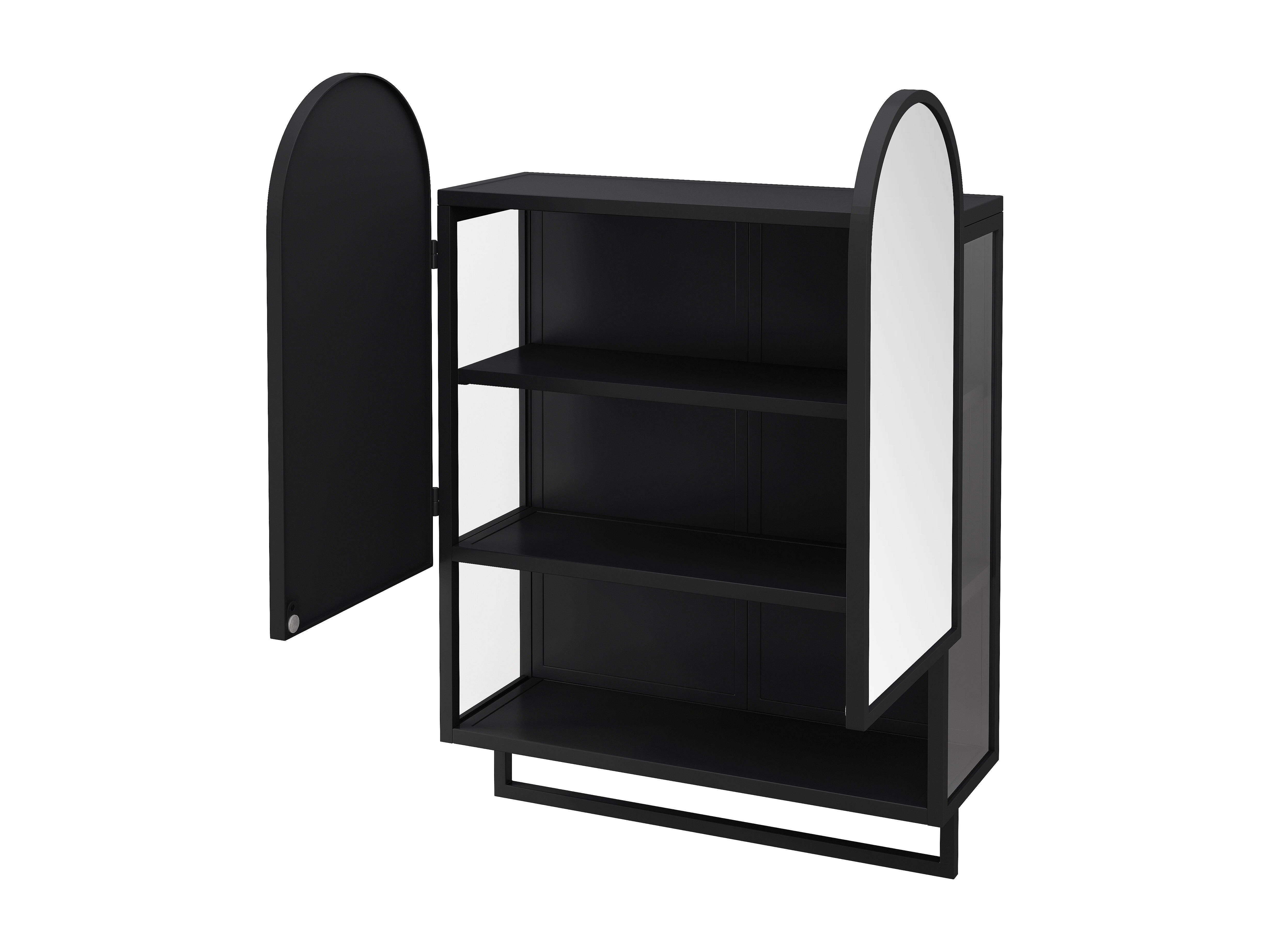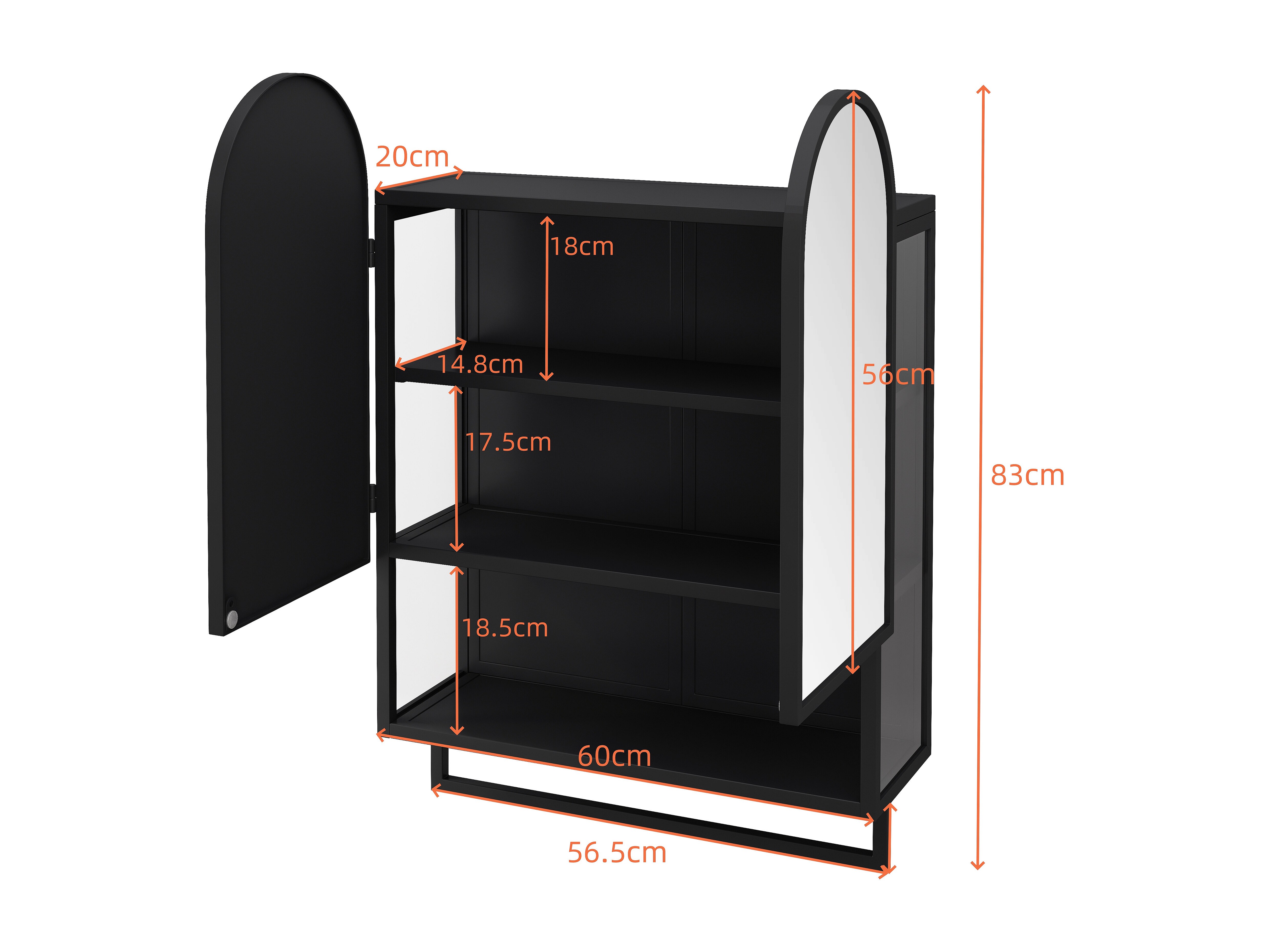 Armoire miroir moderne à double arche, 2 portes, métal et verre trempé, noir (60x20x83cm)
