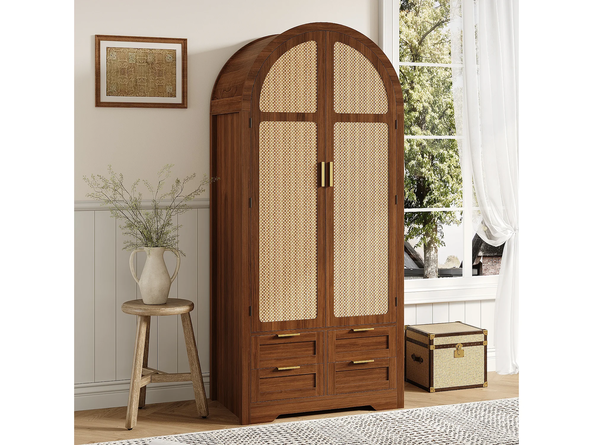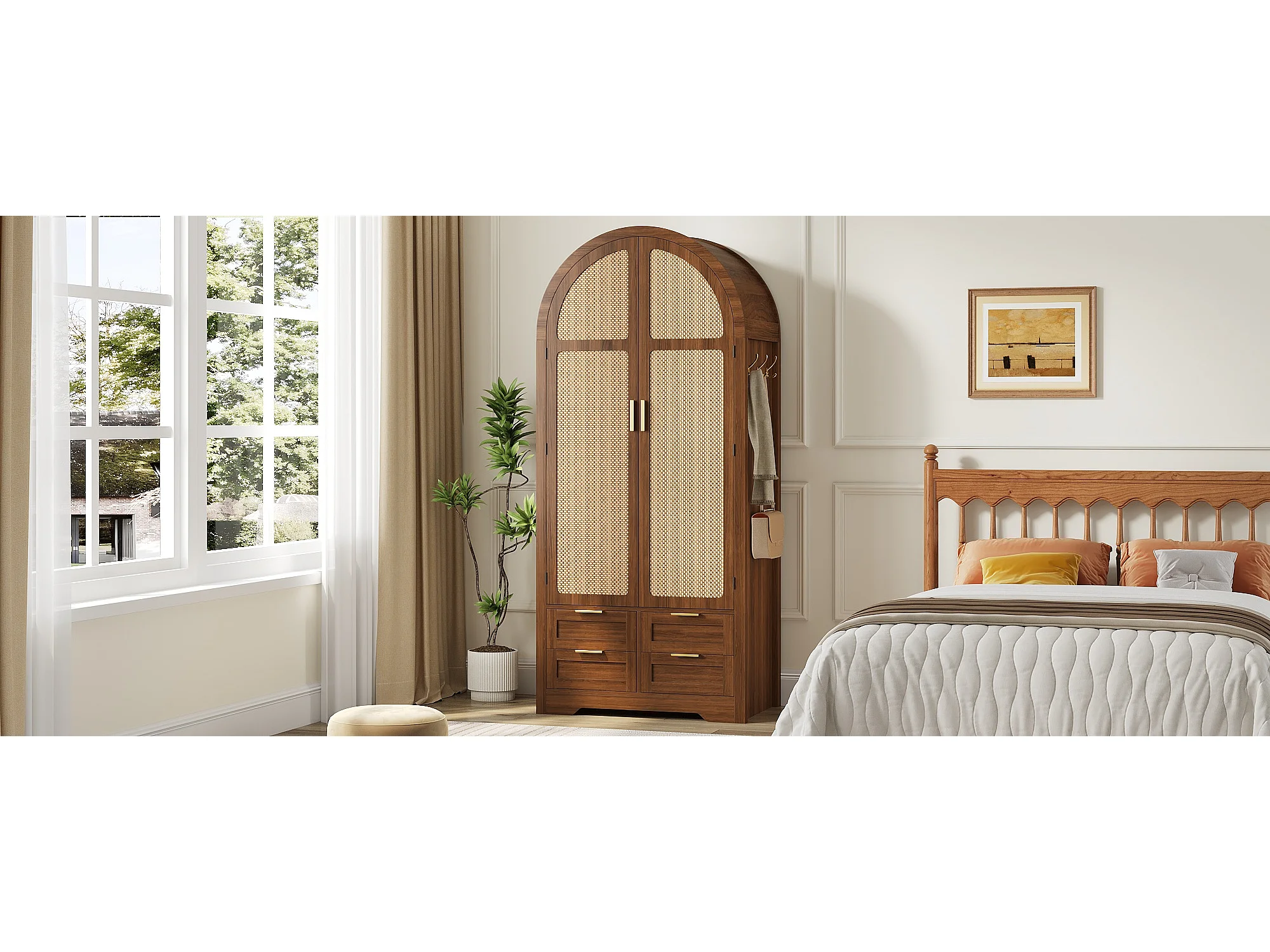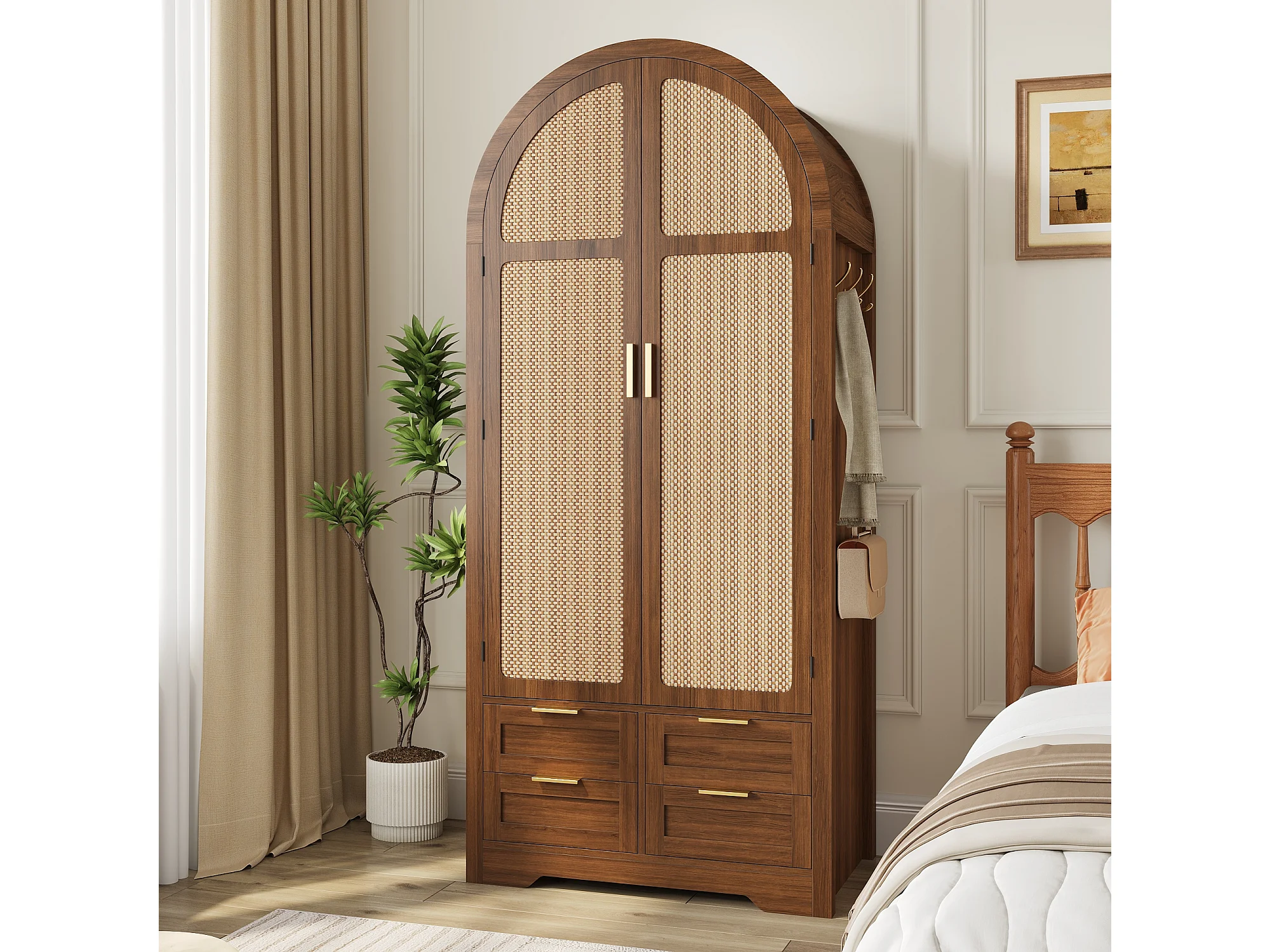 Armoire moderne à portes courbes - 80 x 50 x 179 cm - avec tringle + 4 tiroirs - pour chambres + entrées - MDF - marron