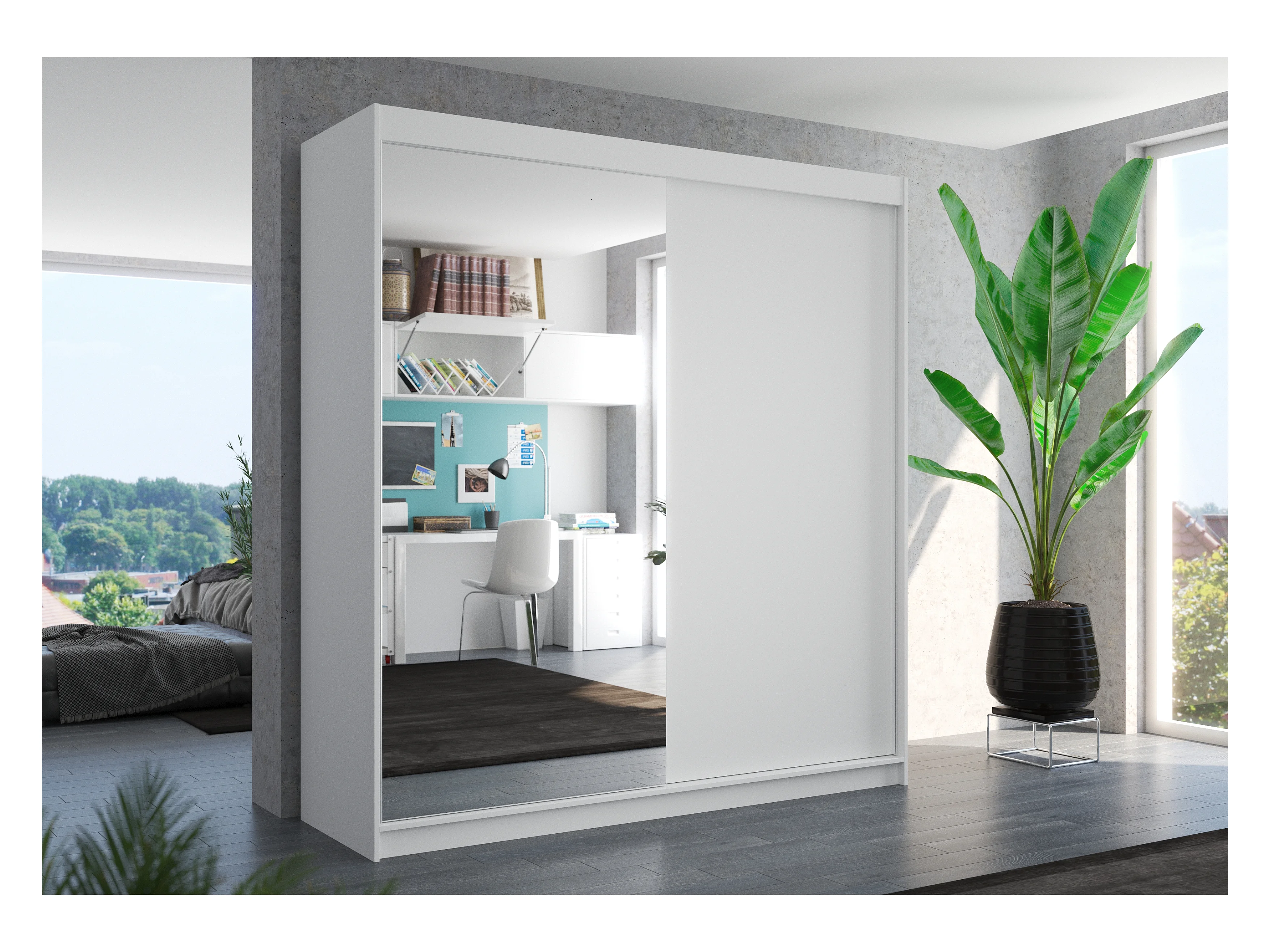 Armoire moderne chambre adulte 2 portes coulissantes 1 blanche 1 miroir Davia 200cm