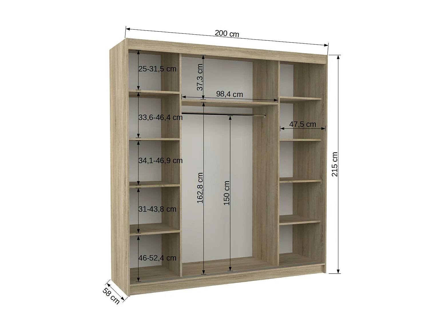 Armoire chambre adulte 2 portes coulissantes 1 noir 1 miroir Olivia 200cm