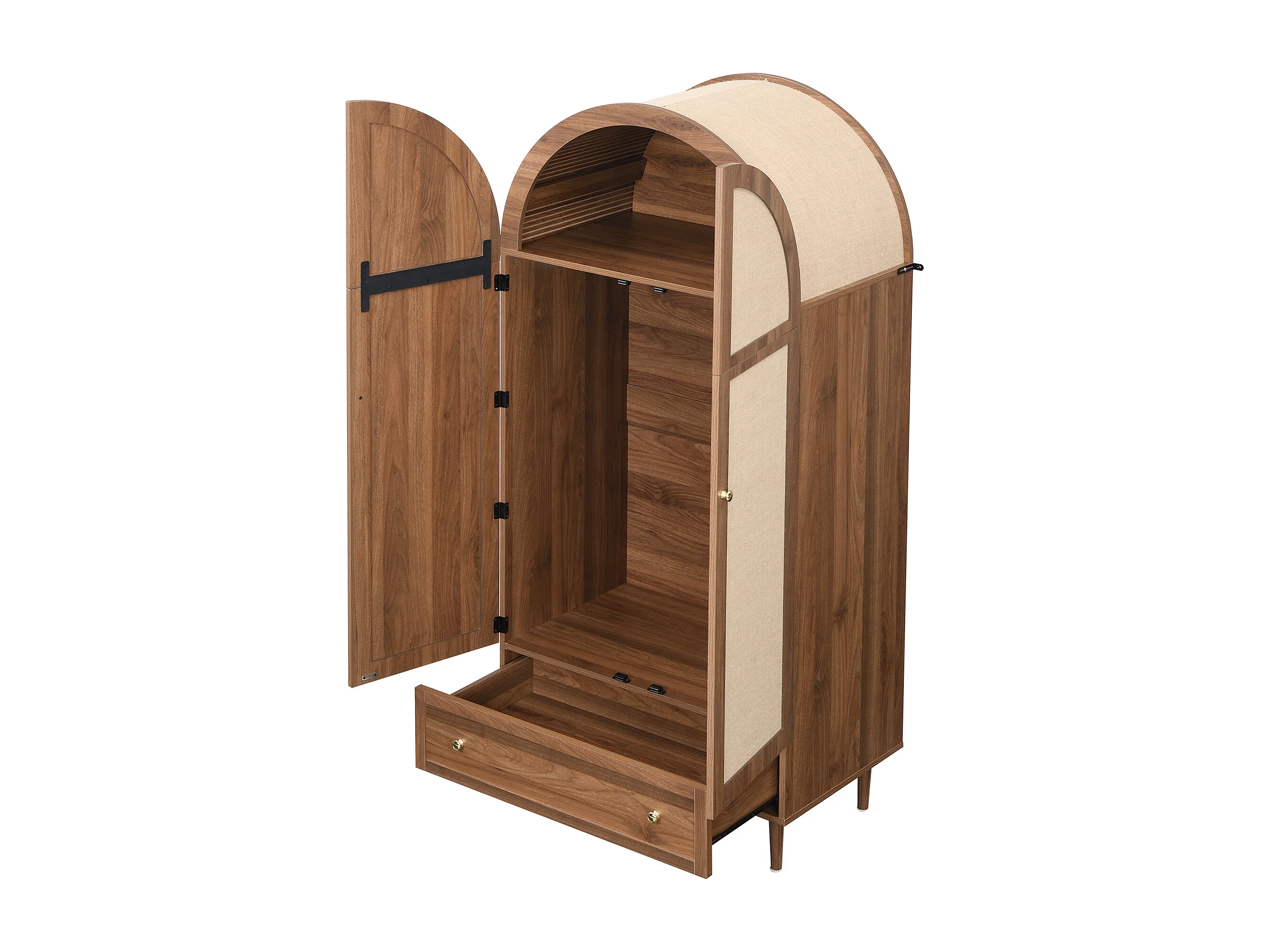 Armoire Moderne en MDF, Porte en Tissu & Tiroir, Design Noyer, (79x50x175 cm)
