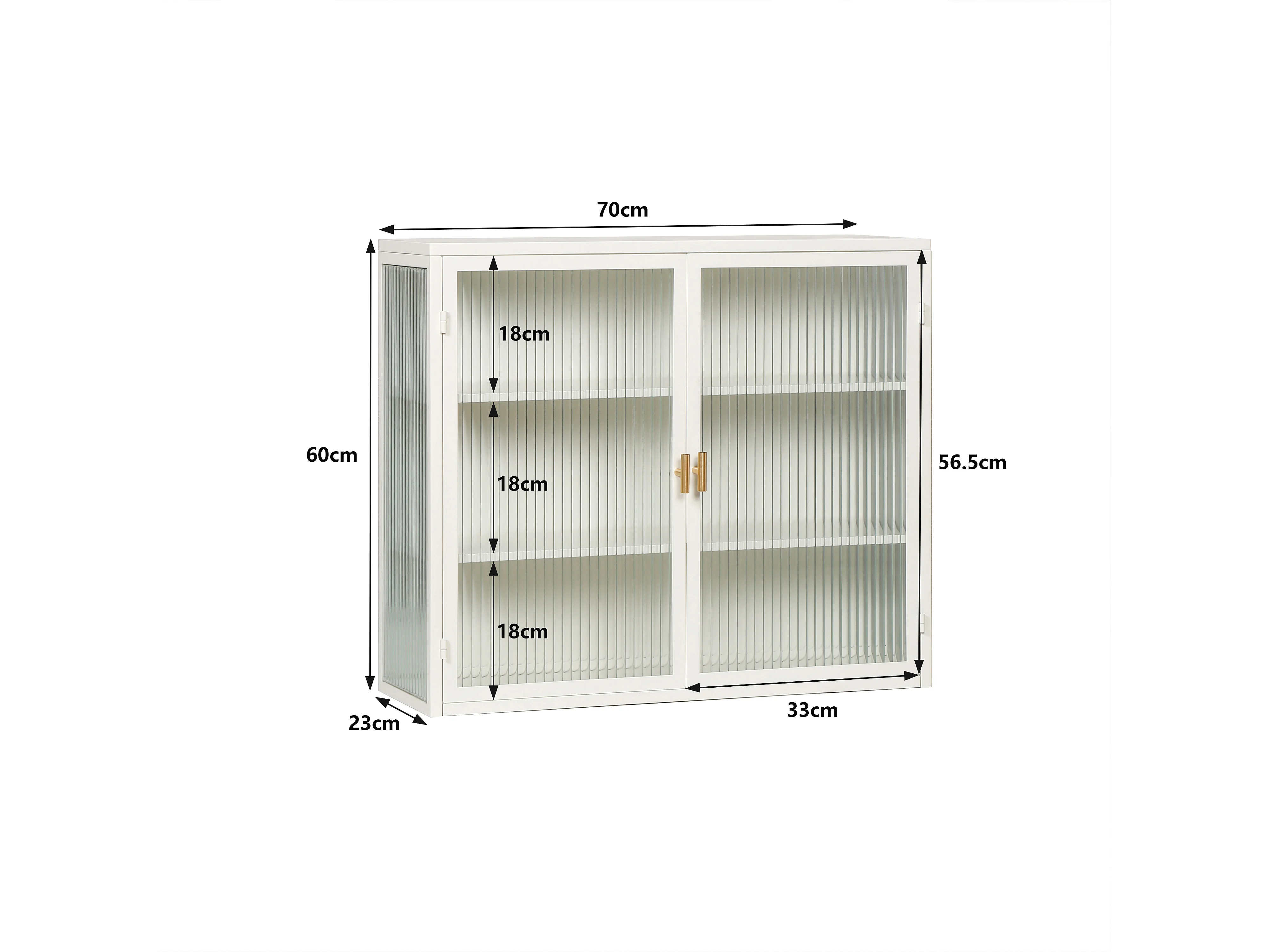 Armoire murale 70 cm avec 2 portes vitrées et 3 niveaux - Blanc