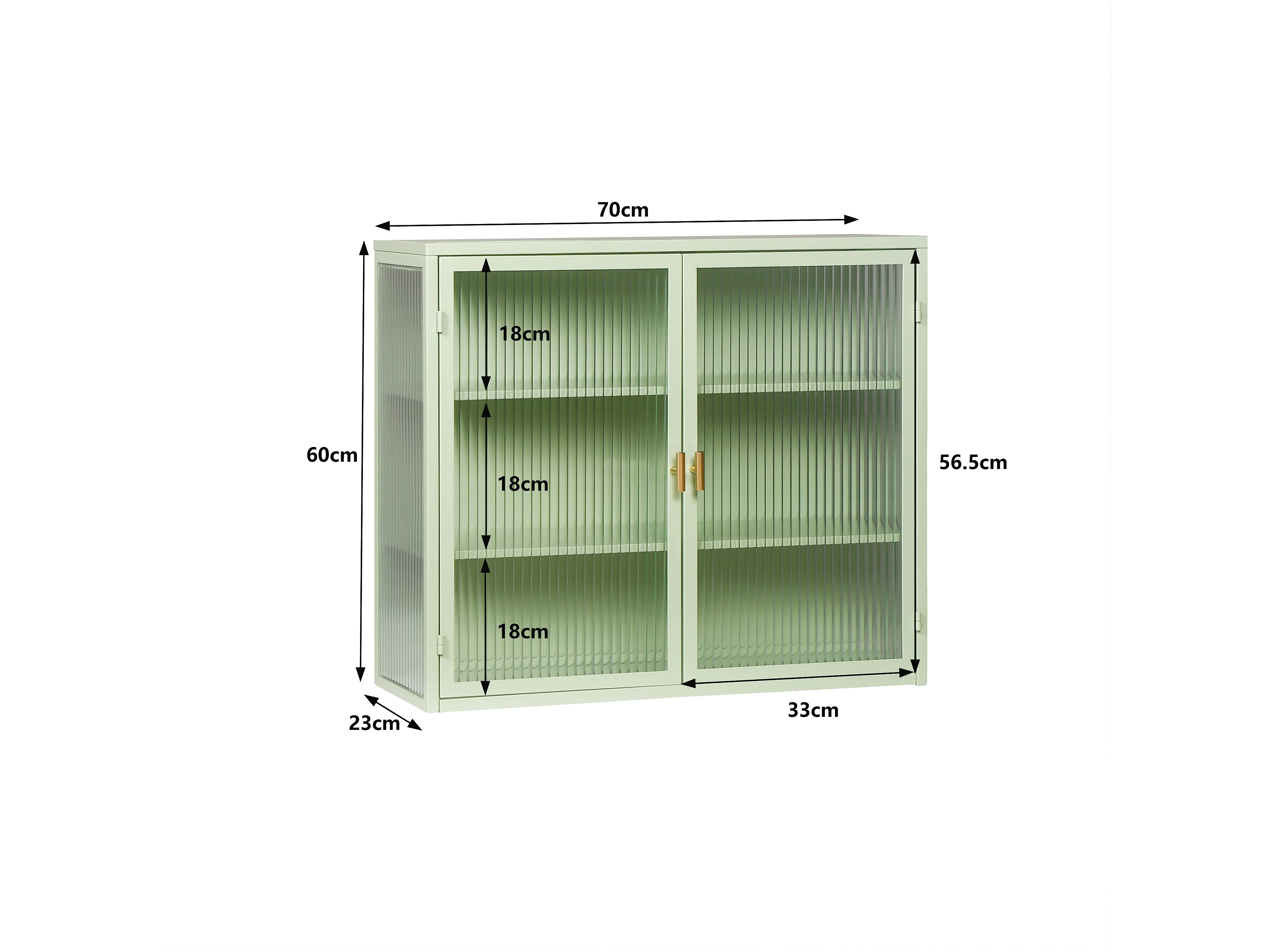 Armoire murale 70 cm avec 2 portes vitrées et 3 niveaux - Vert