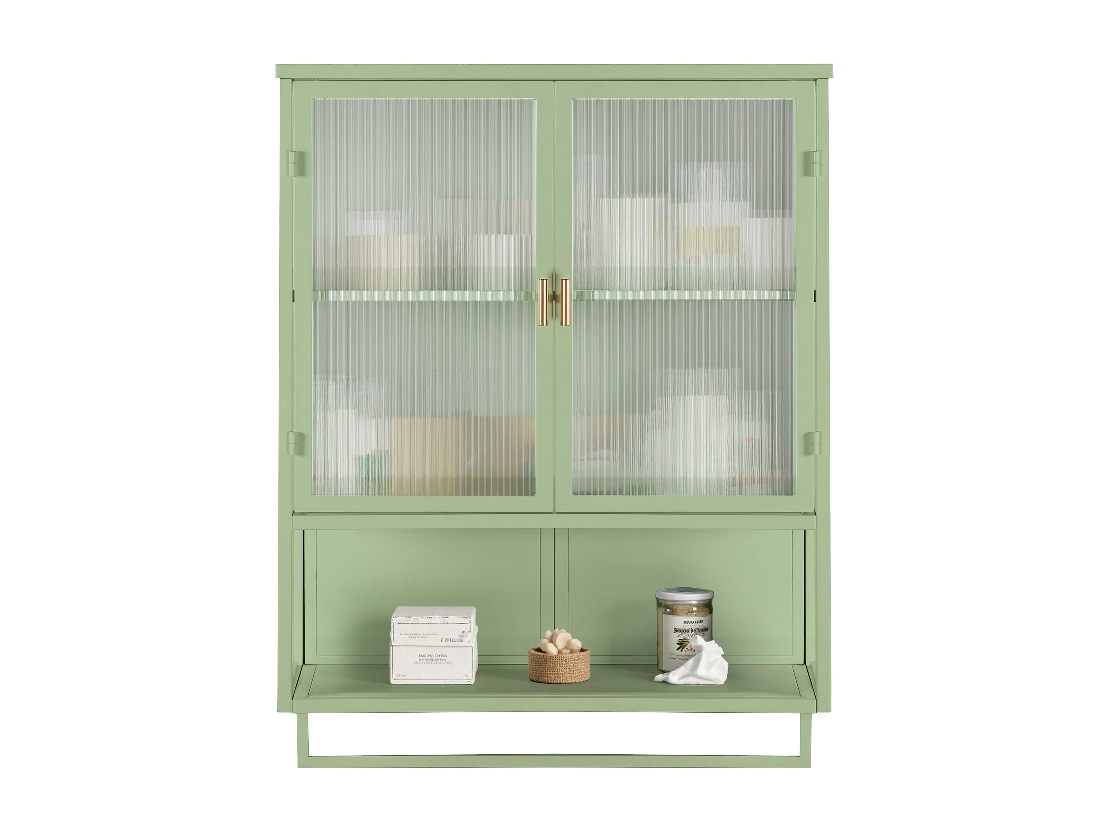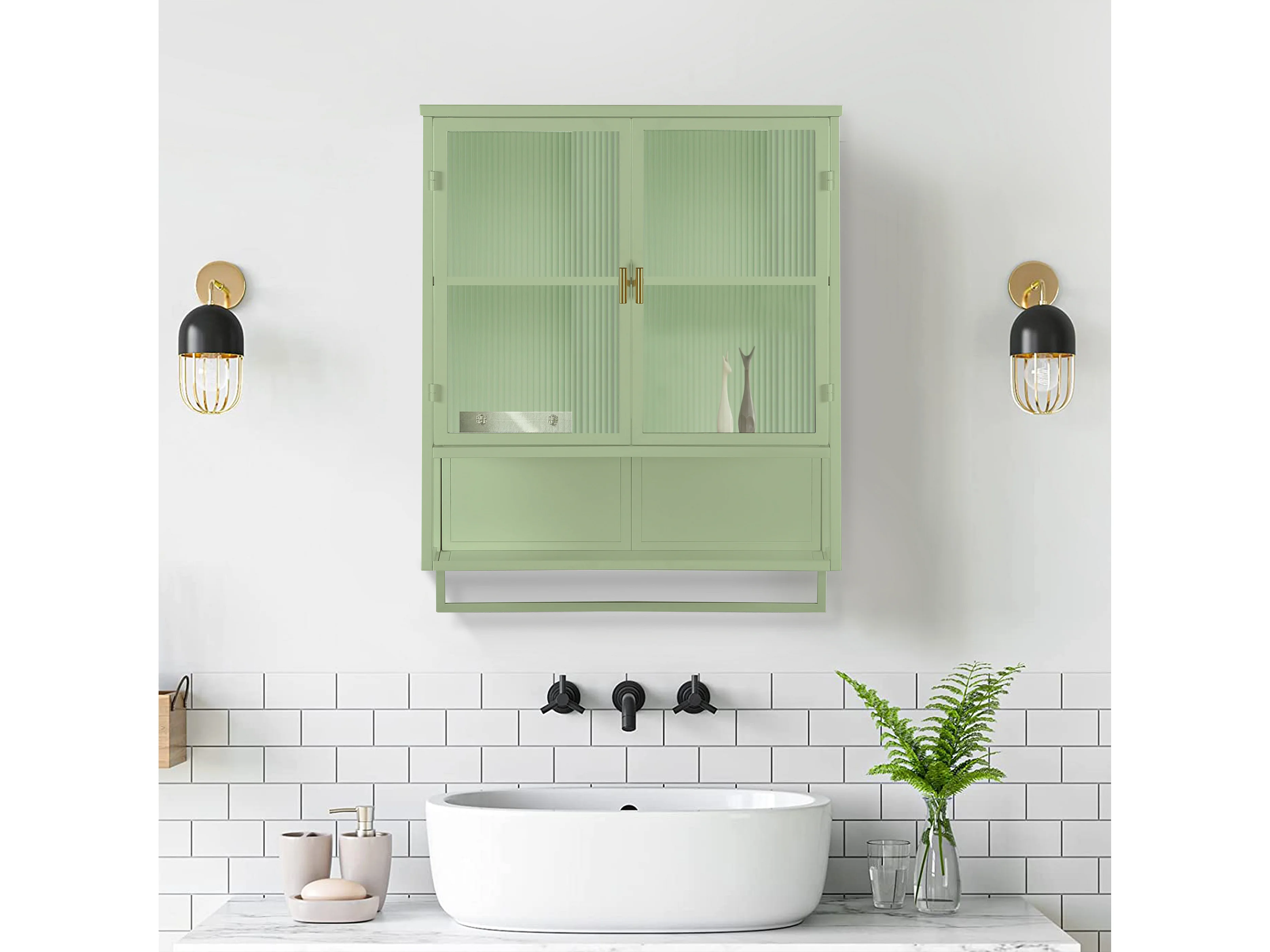 Armoire murale avec 2 portes vitrées et étagère , porte‑serviette - Blanc