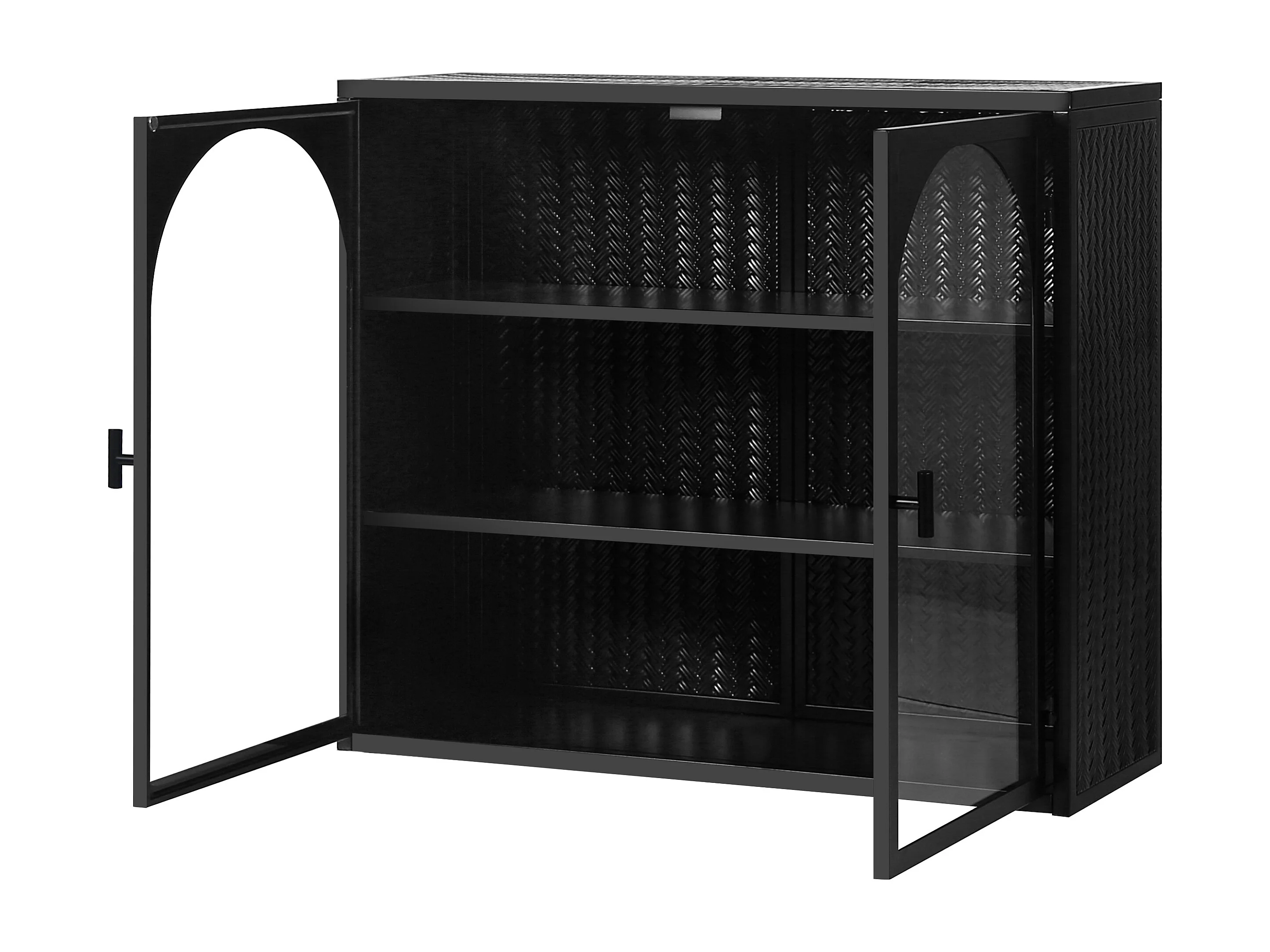 Armoire murale avec 2 portes vitrées - Motif tissé , noir