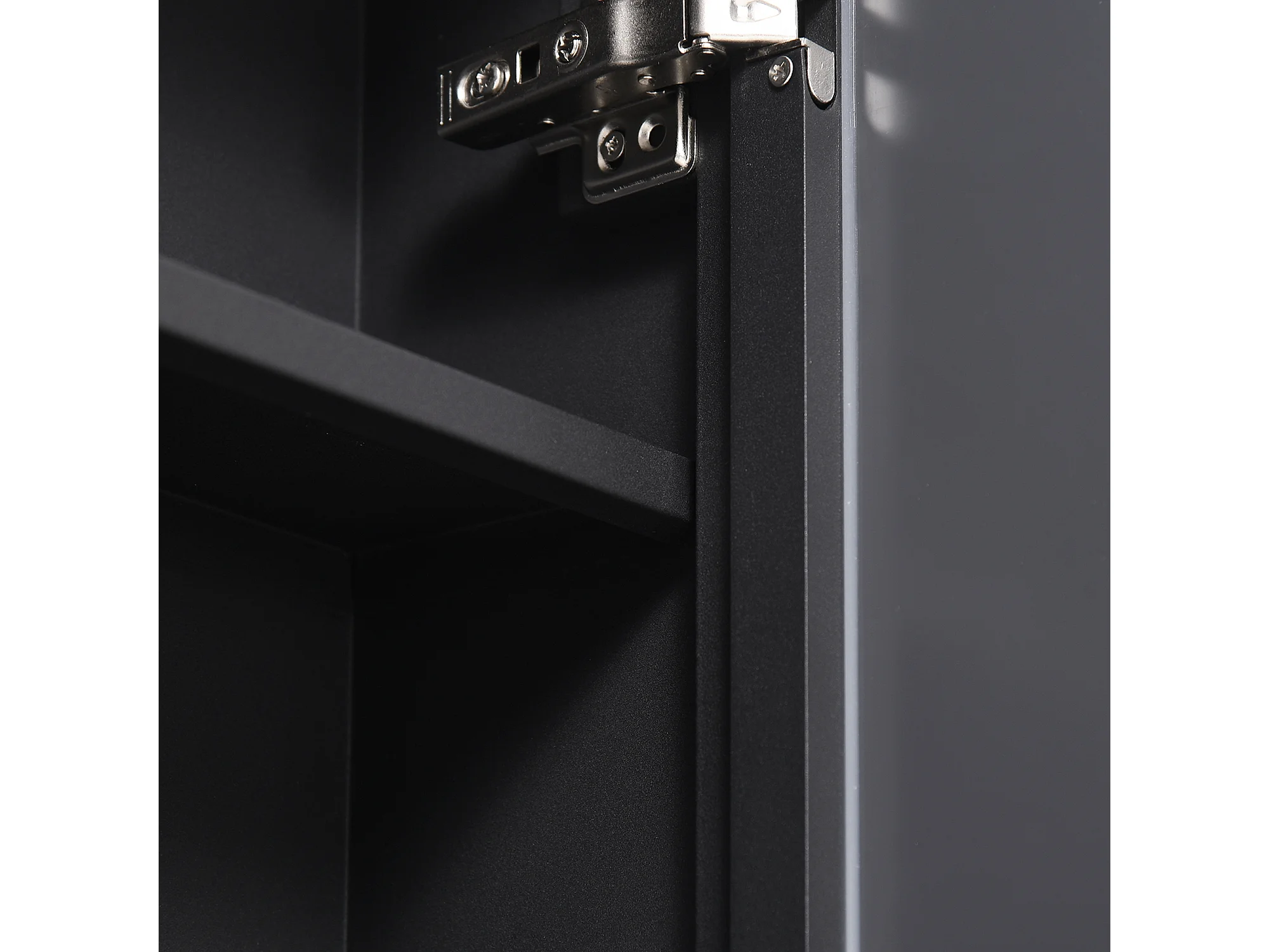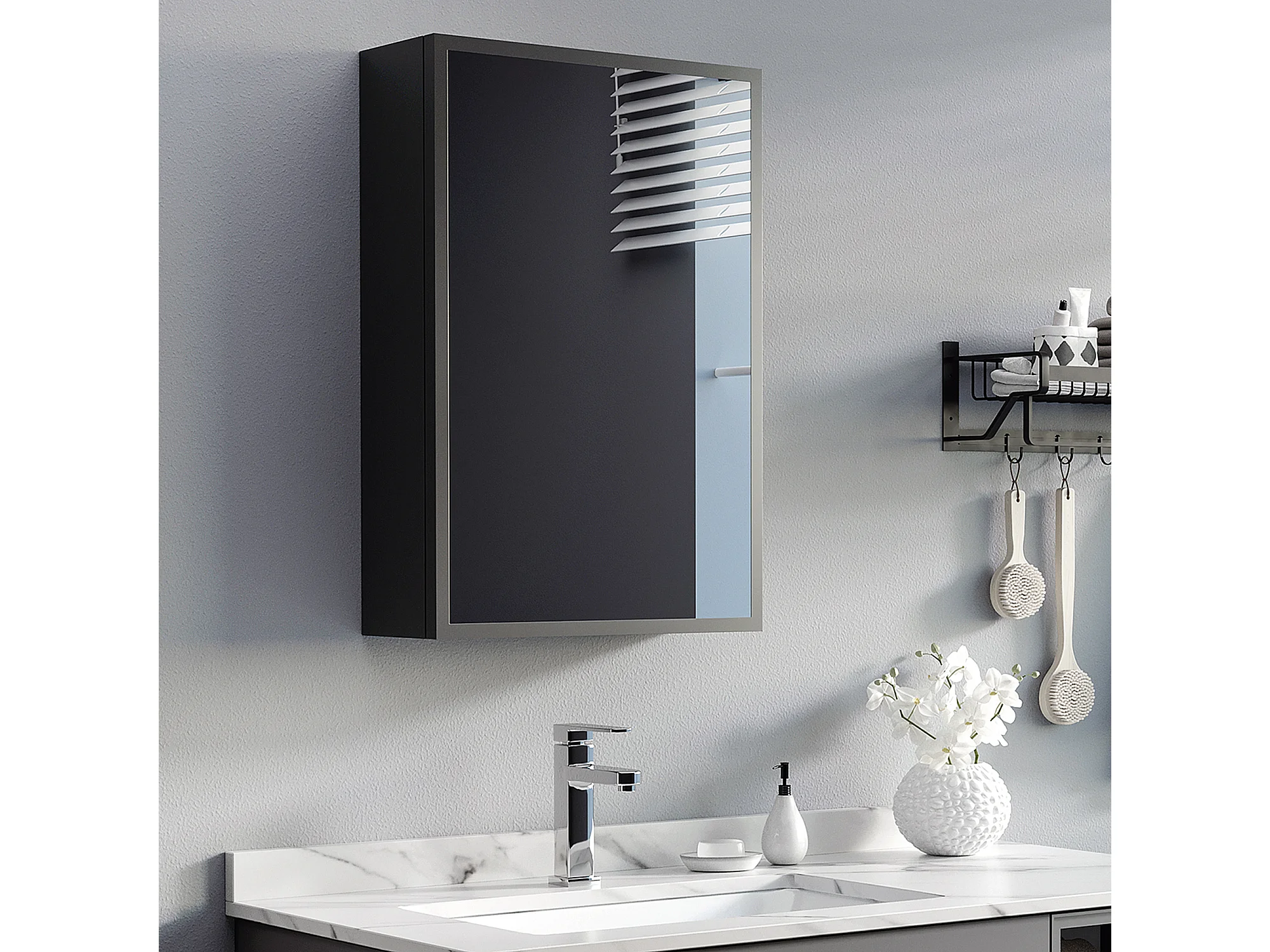 Armoire murale avec miroir, 3 étagères, acier noir, design moderne (40x15x60cm)
