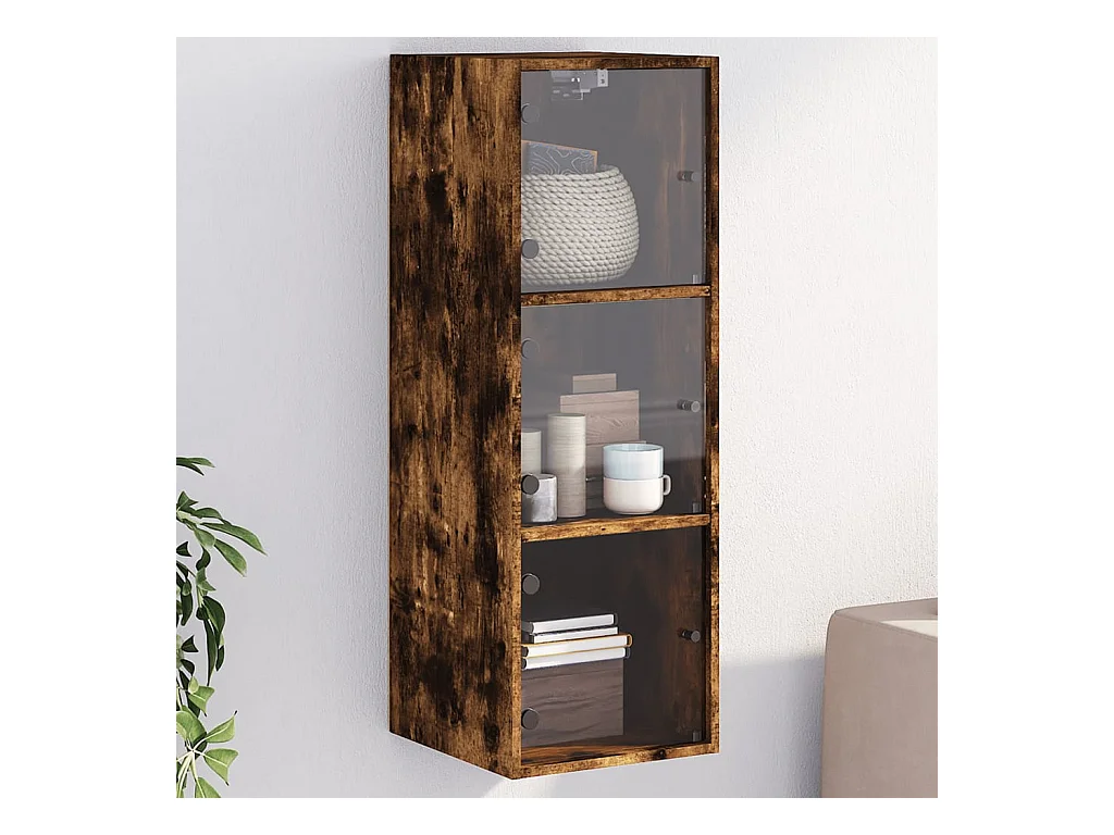 Armoire murale avec portes en verre chêne fumé 35x37x100 cm