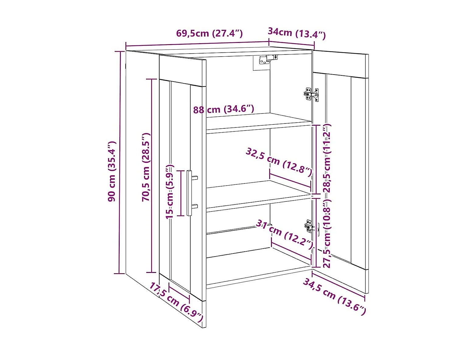 Armoire murale blanc 69,5x34x90 cm bois d'ingénierie