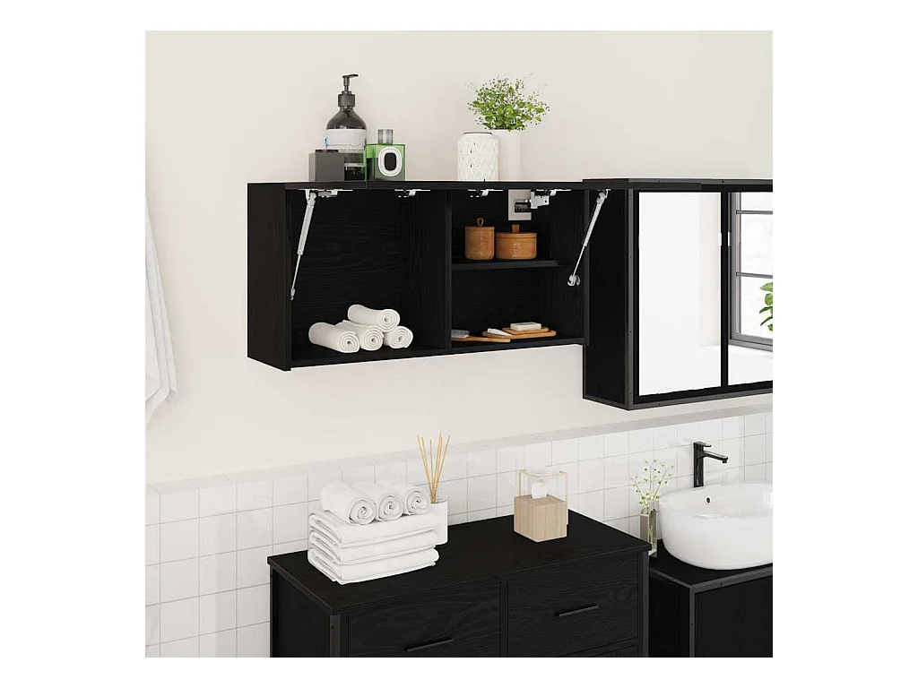 Armoire murale de bain noir 60x25x30 cm bois d'ingénierie