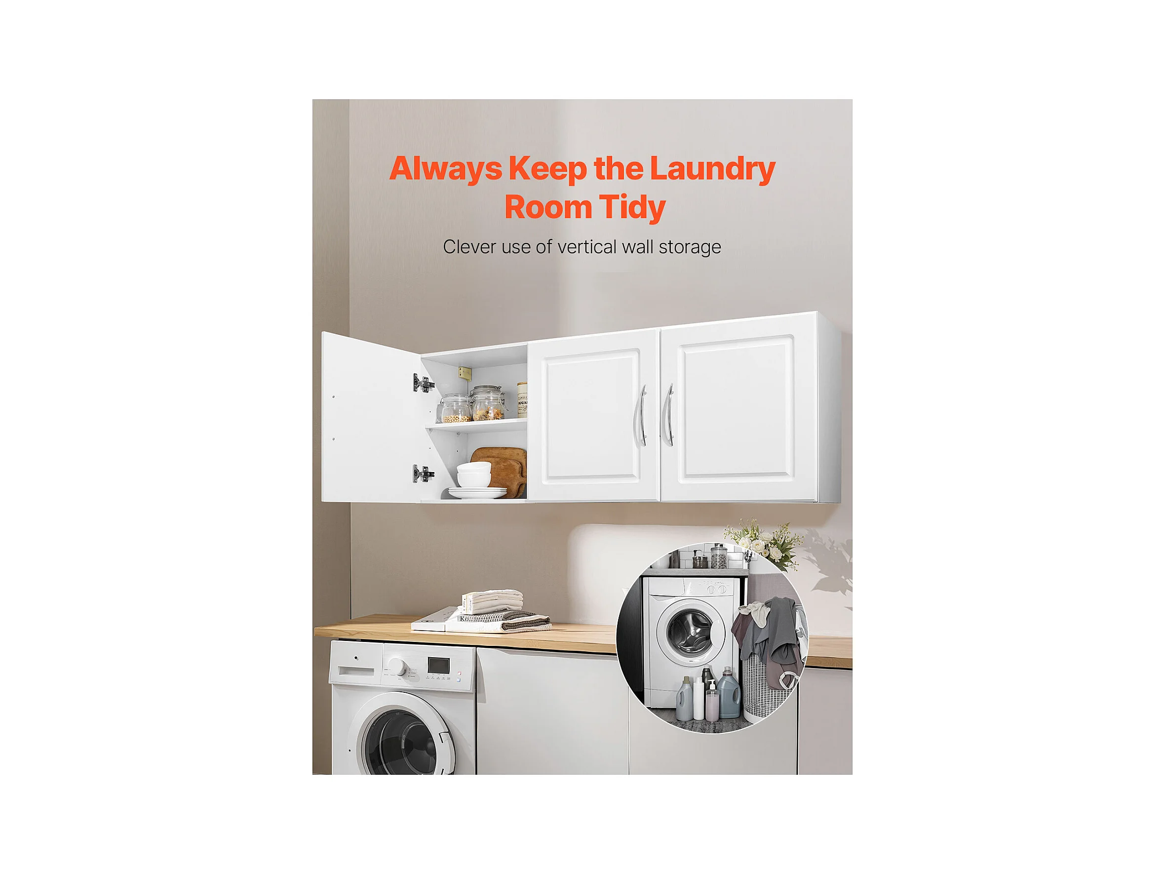Armoire Murale de Buanderie SucceBuy, Placard Rangement 137,2 cm avec 3 Portes, en Panneaux de Particules et MDF