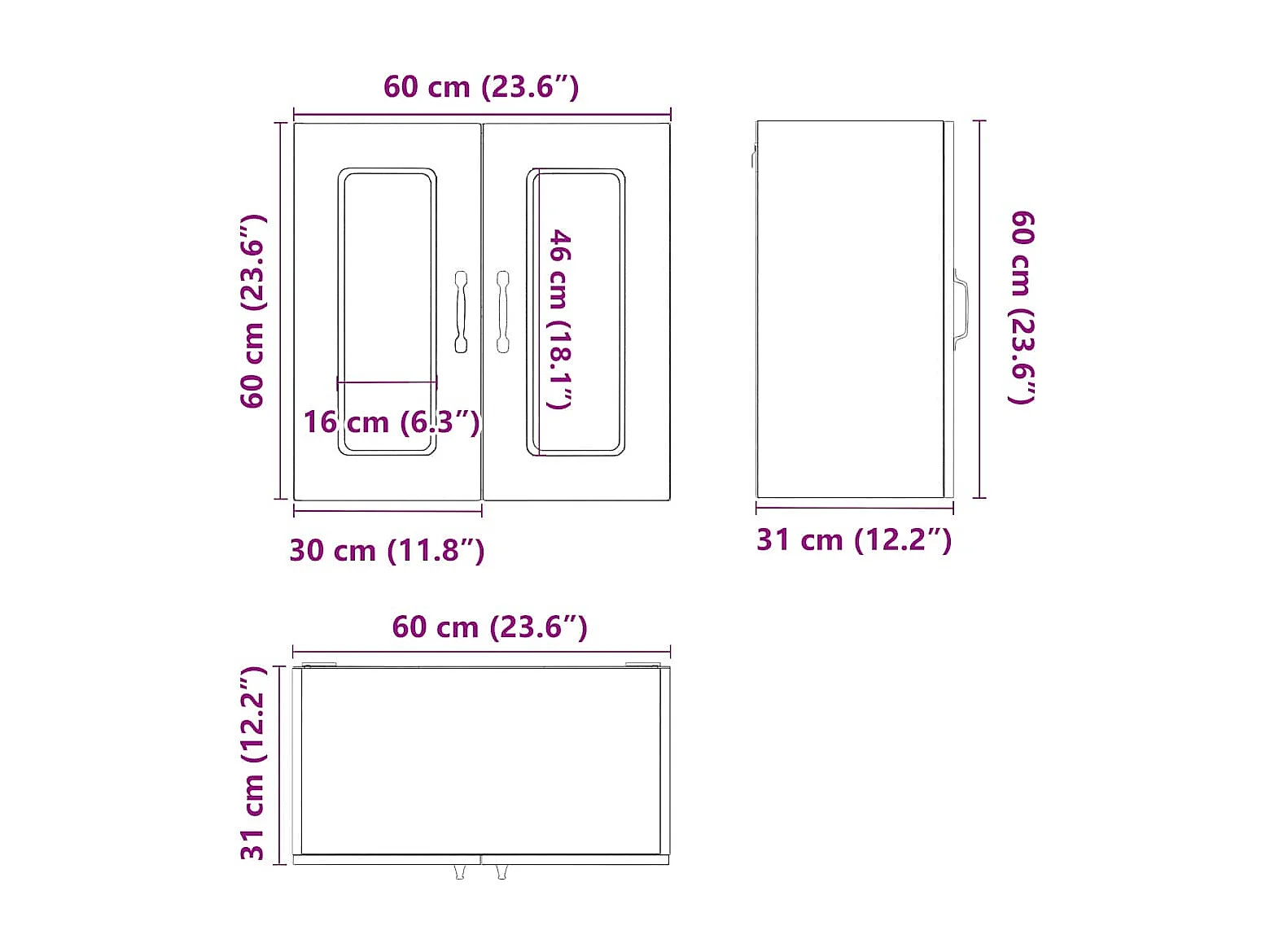 Armoire murale de cuisine avec porte en verre Porto blanc