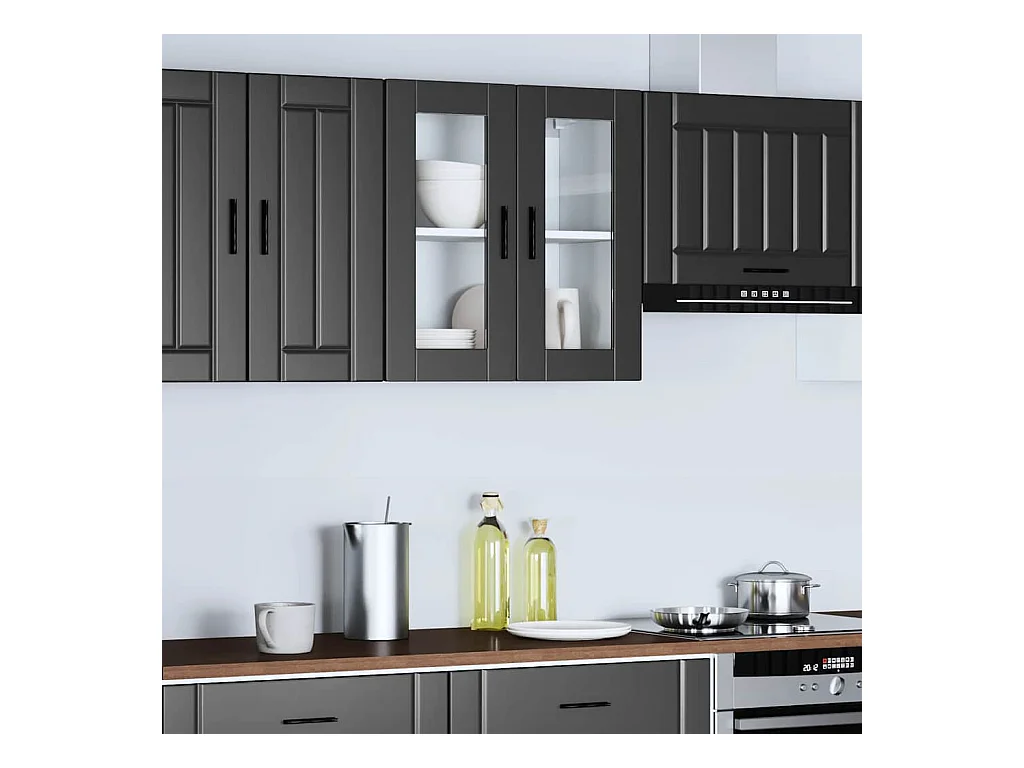 Armoire murale de cuisine Kalmar noir bois d'ingénierie