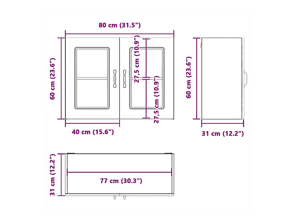 Armoire murale de cuisine avec porte vitrée "Kalmar" Bois d'ingénierie gris Sonoma