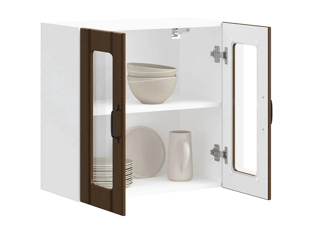 Armoire murale de cuisine et porte en verre Lucca chêne marron