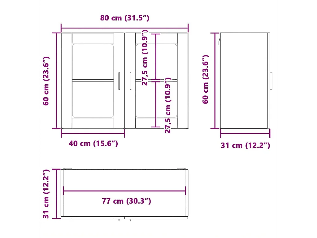 Armoire murale de cuisine et porte en verre Porto chêne sonoma