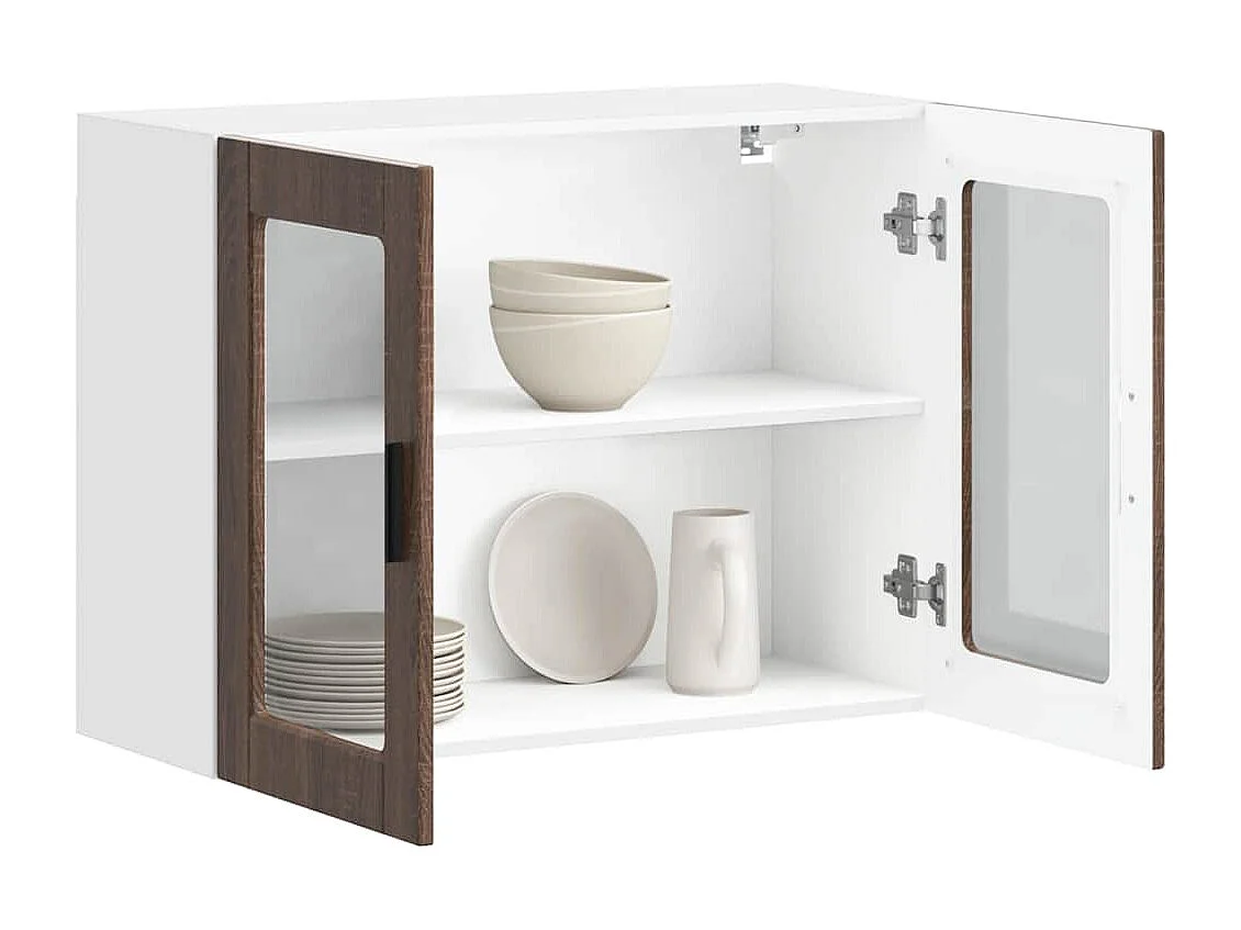 Armoire murale de cuisine et porte en verre Porto chêne marron