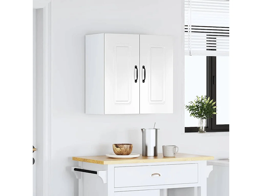 Armoire murale de cuisine Kalmar blanc brillant bois ingénierie