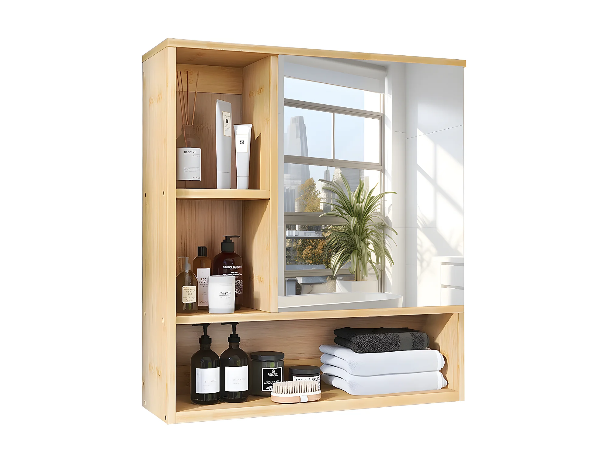 Armoire murale de salle de bain avec miroirs - Armoire de toilette 1 Porte H61cm