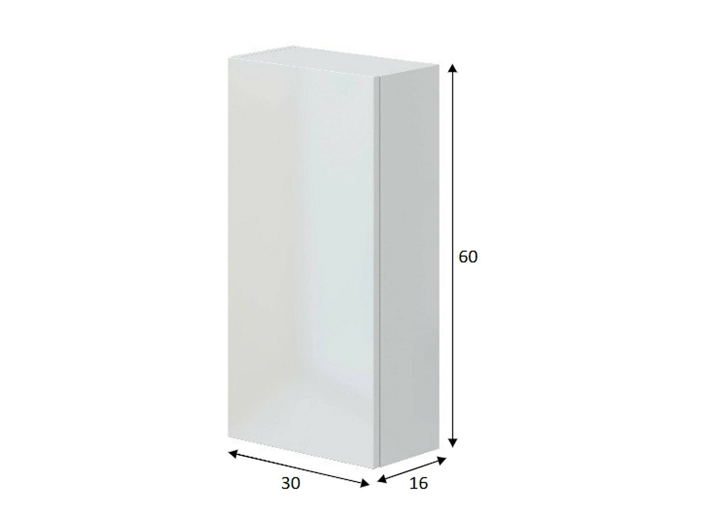 Armoire murale Dzaur, Armoire suspendue, Etagère murale, Armoire auxiliaire multifonctionnelle, 30x16 h60 cm, Blanc brillant