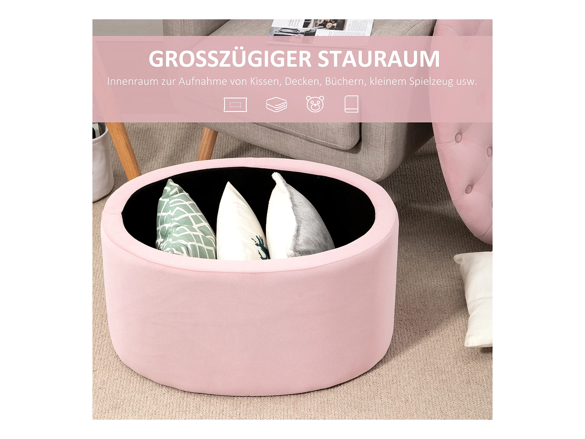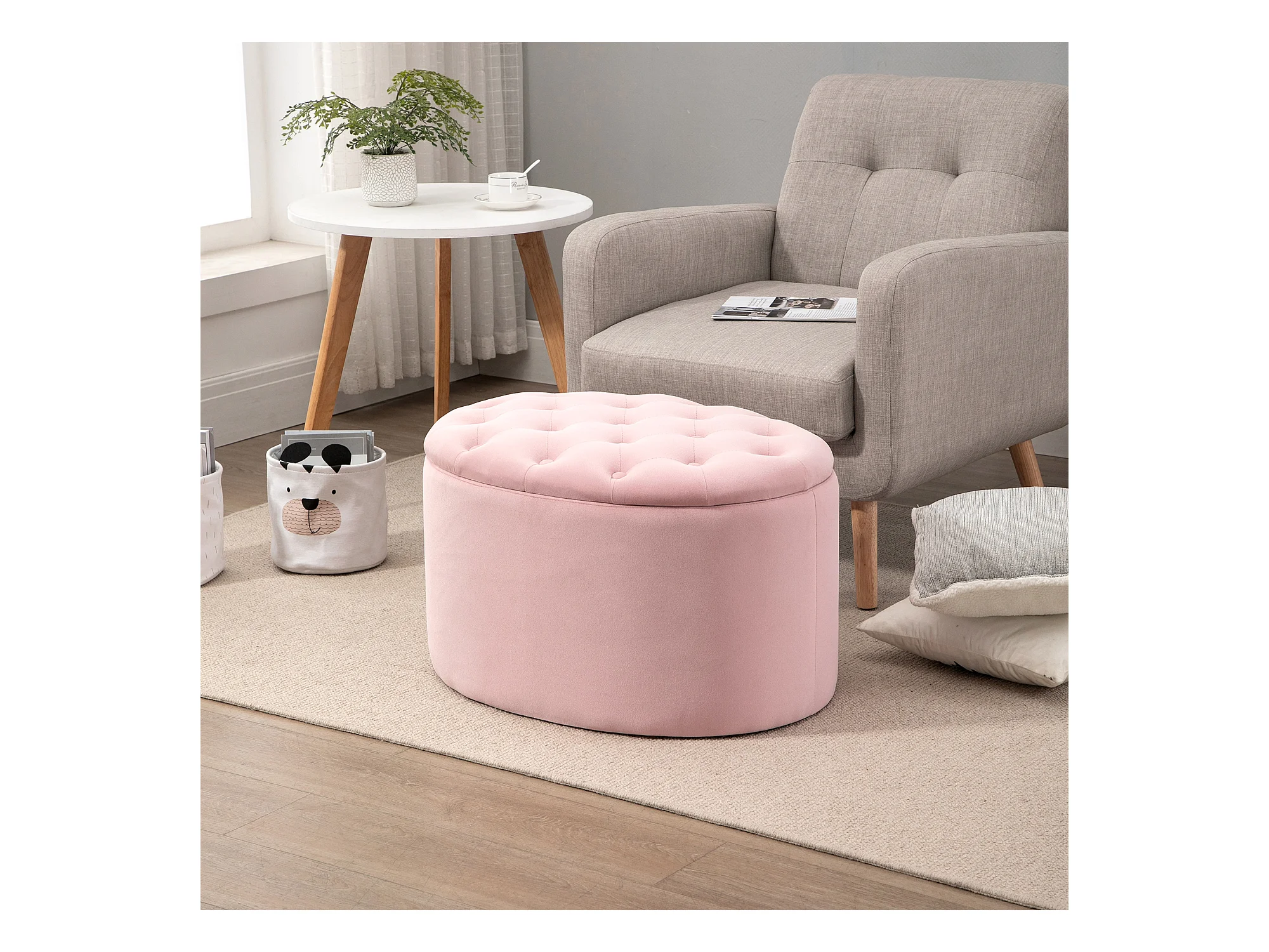 Banc de rangement ovale rembourré, tissu velours et bois d'hévéa, rose (71x52x42 cm)