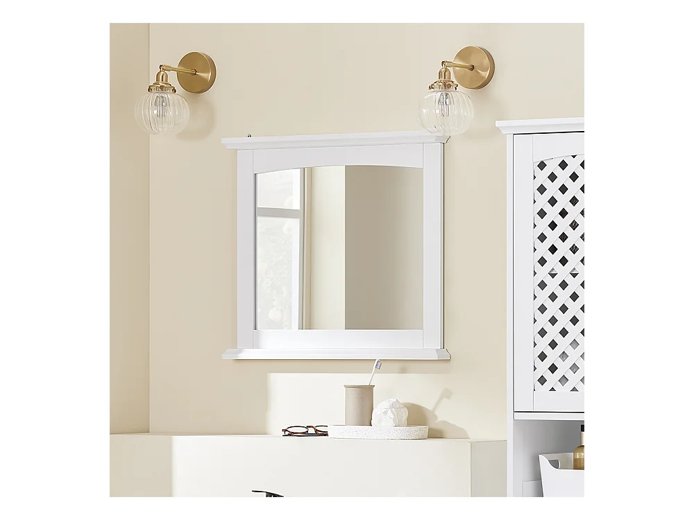 Armoire Murale pour Salle de Bain avec Miroir Blanc MDF E1 et Étagère en Verre