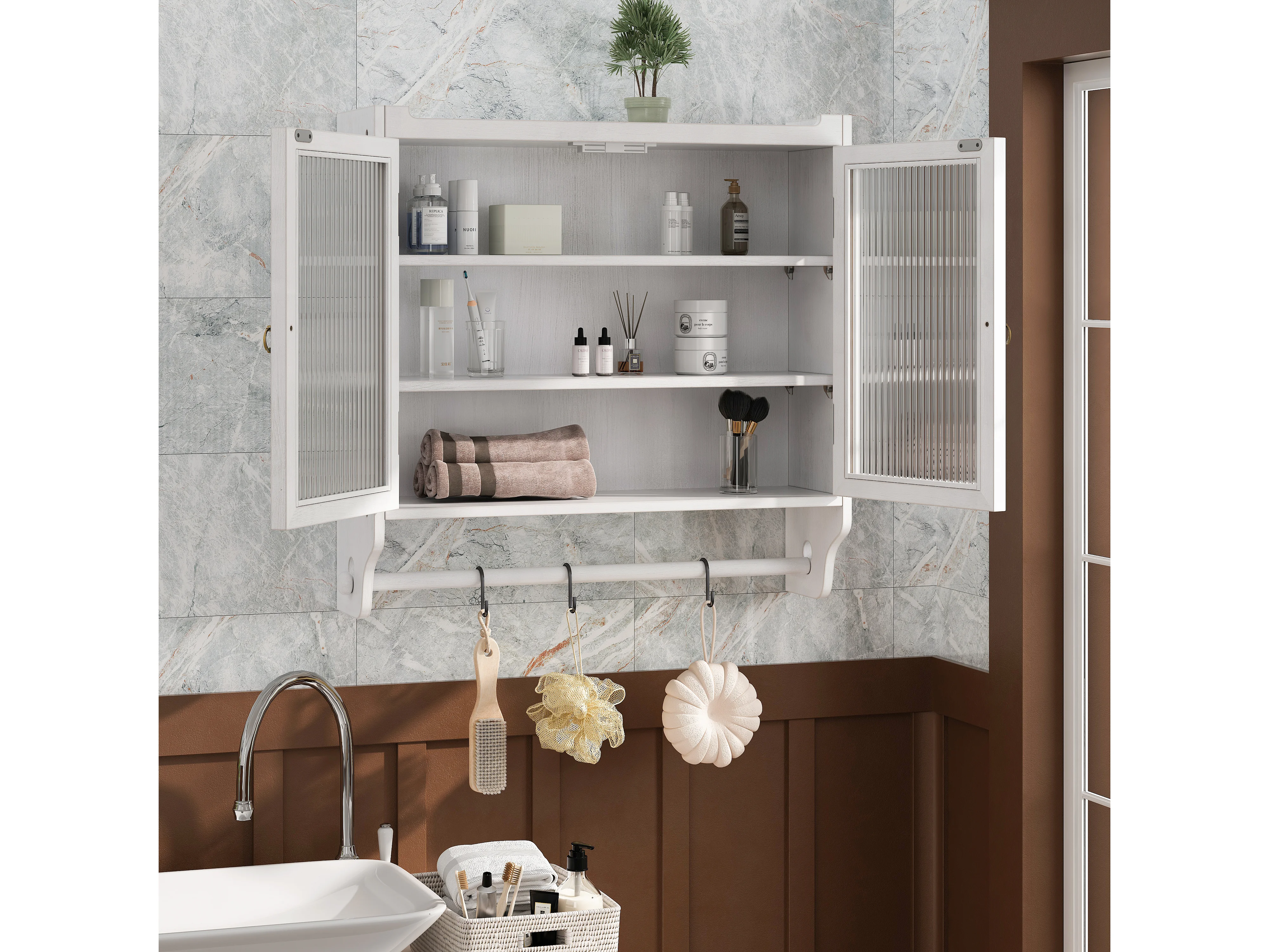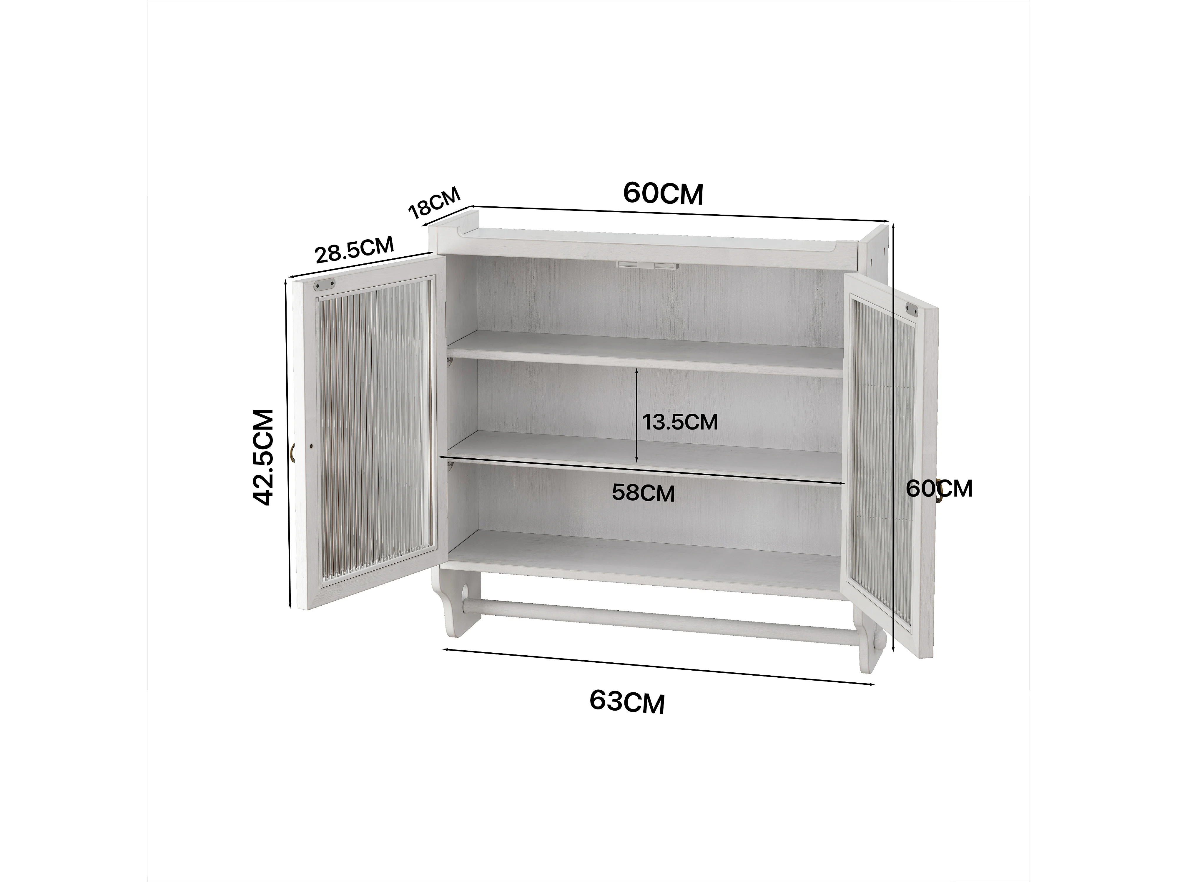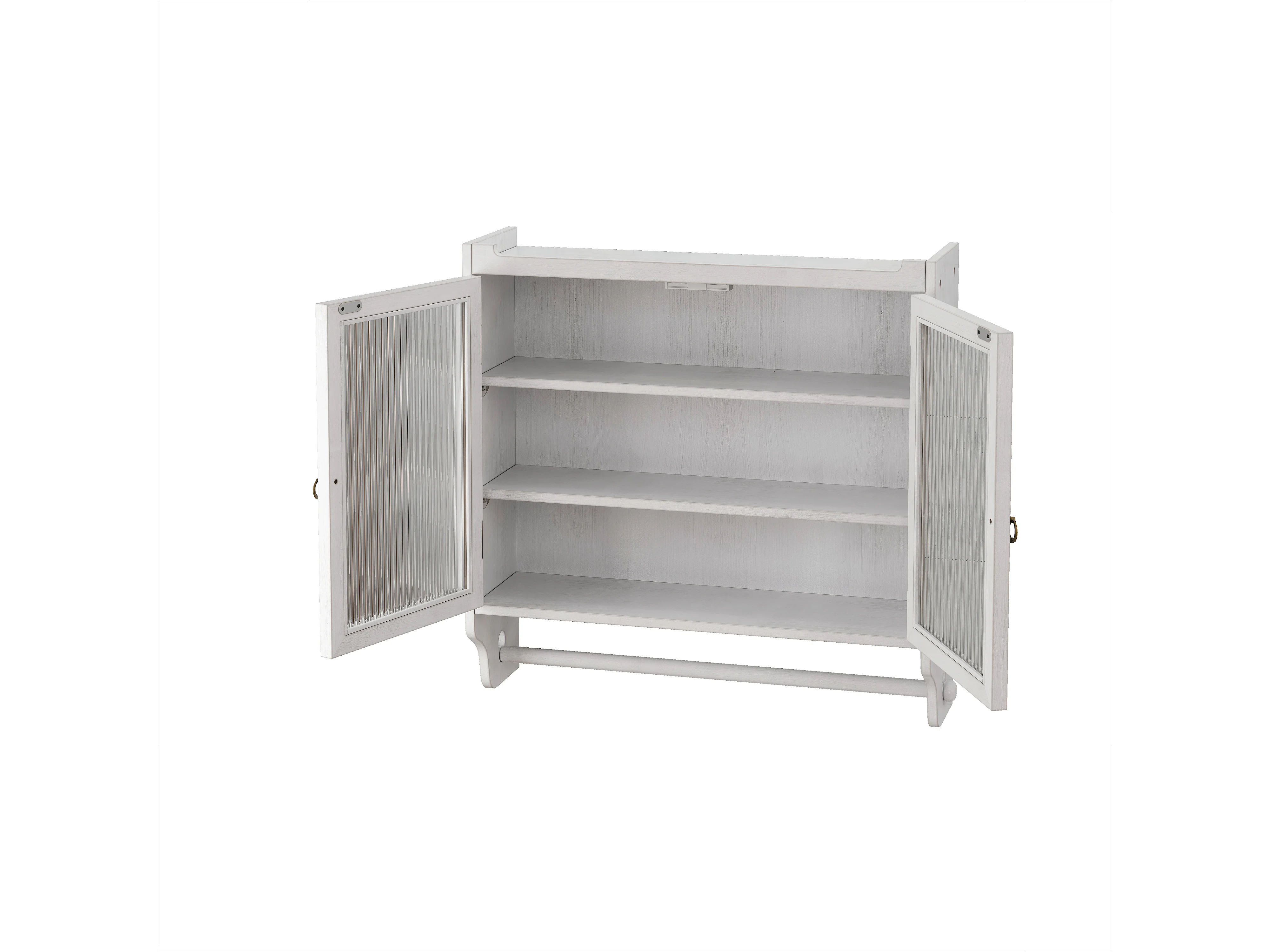 Armoire murale vintage avec 2 portes, 3 étagères - Bois + verre - Blanc