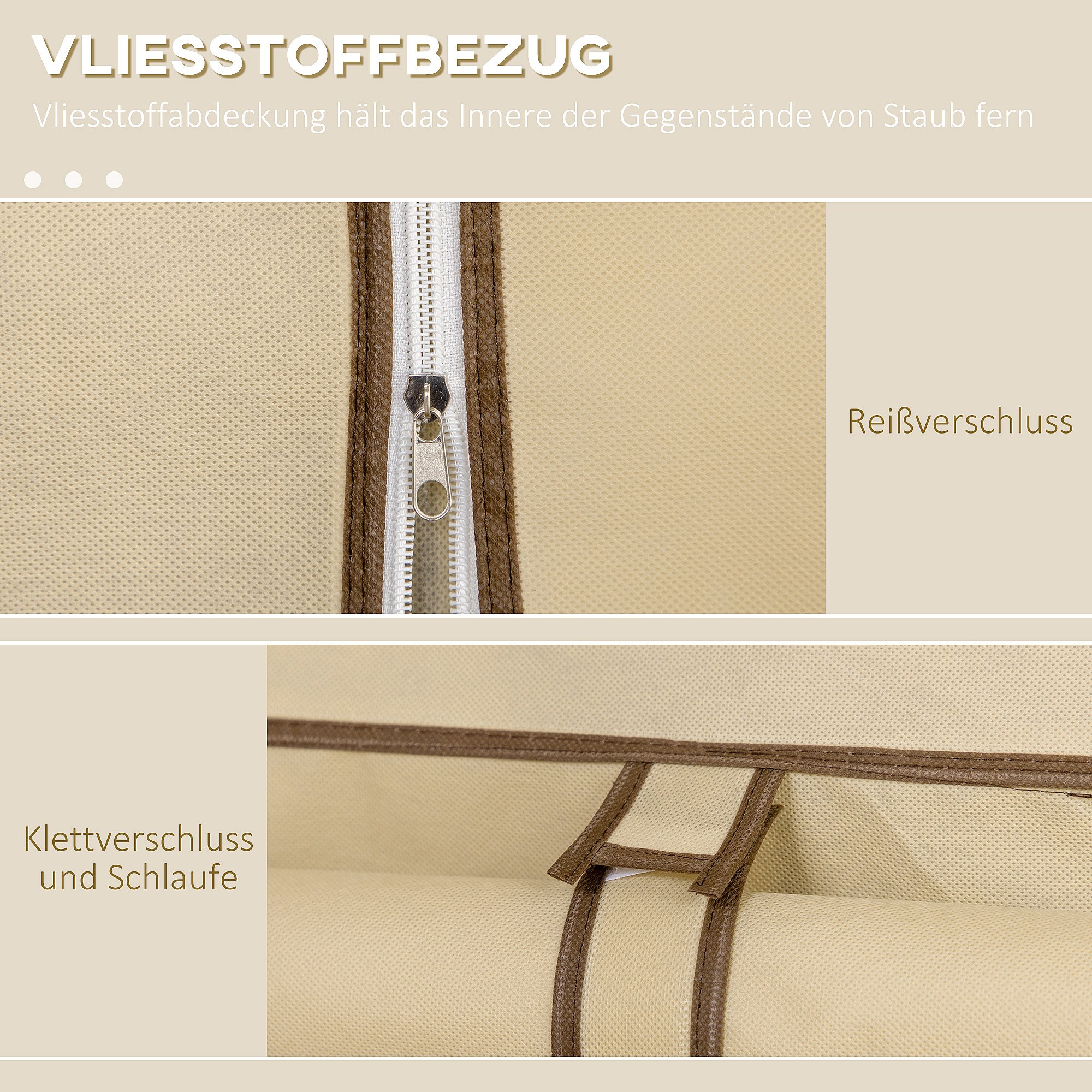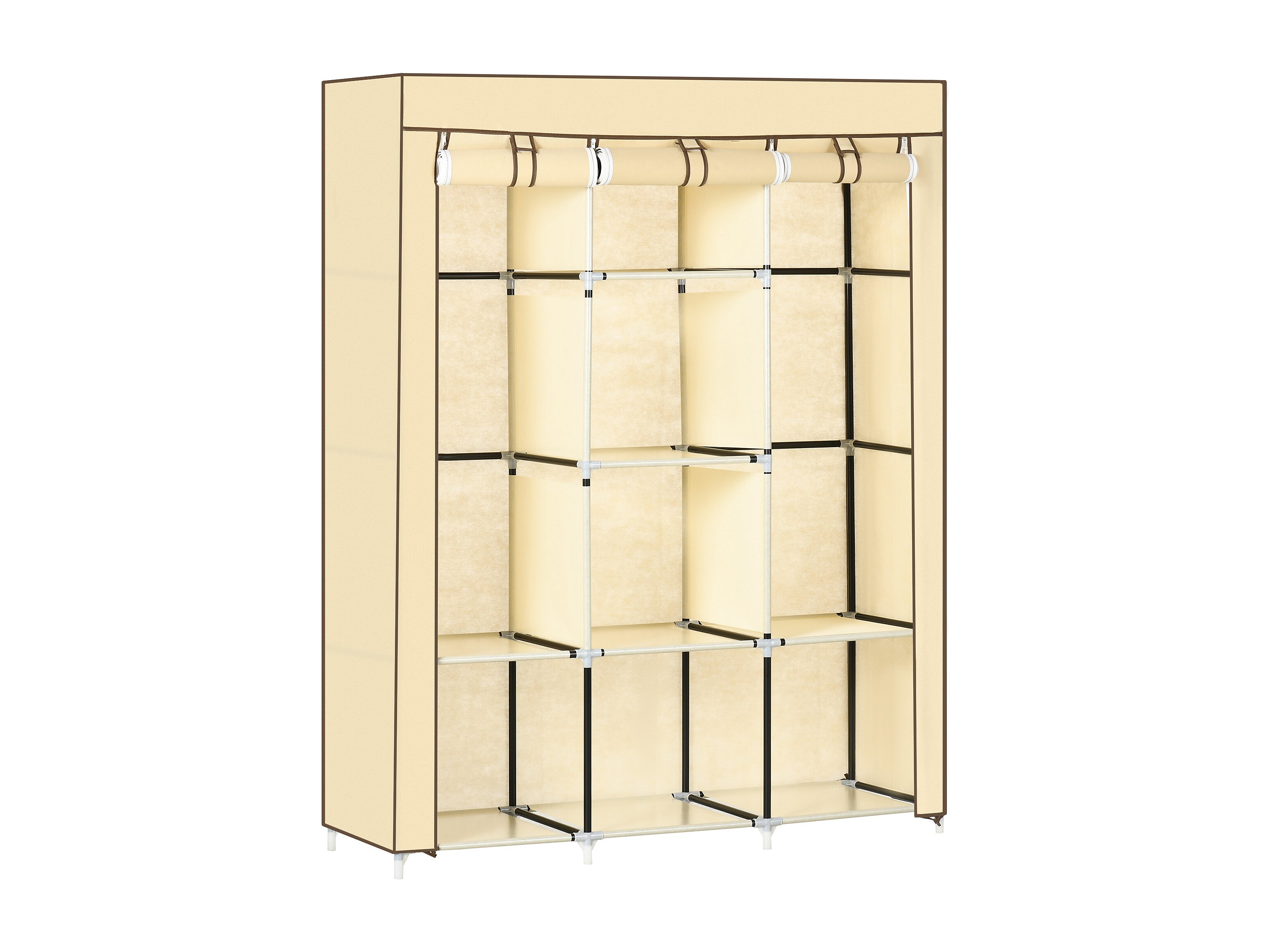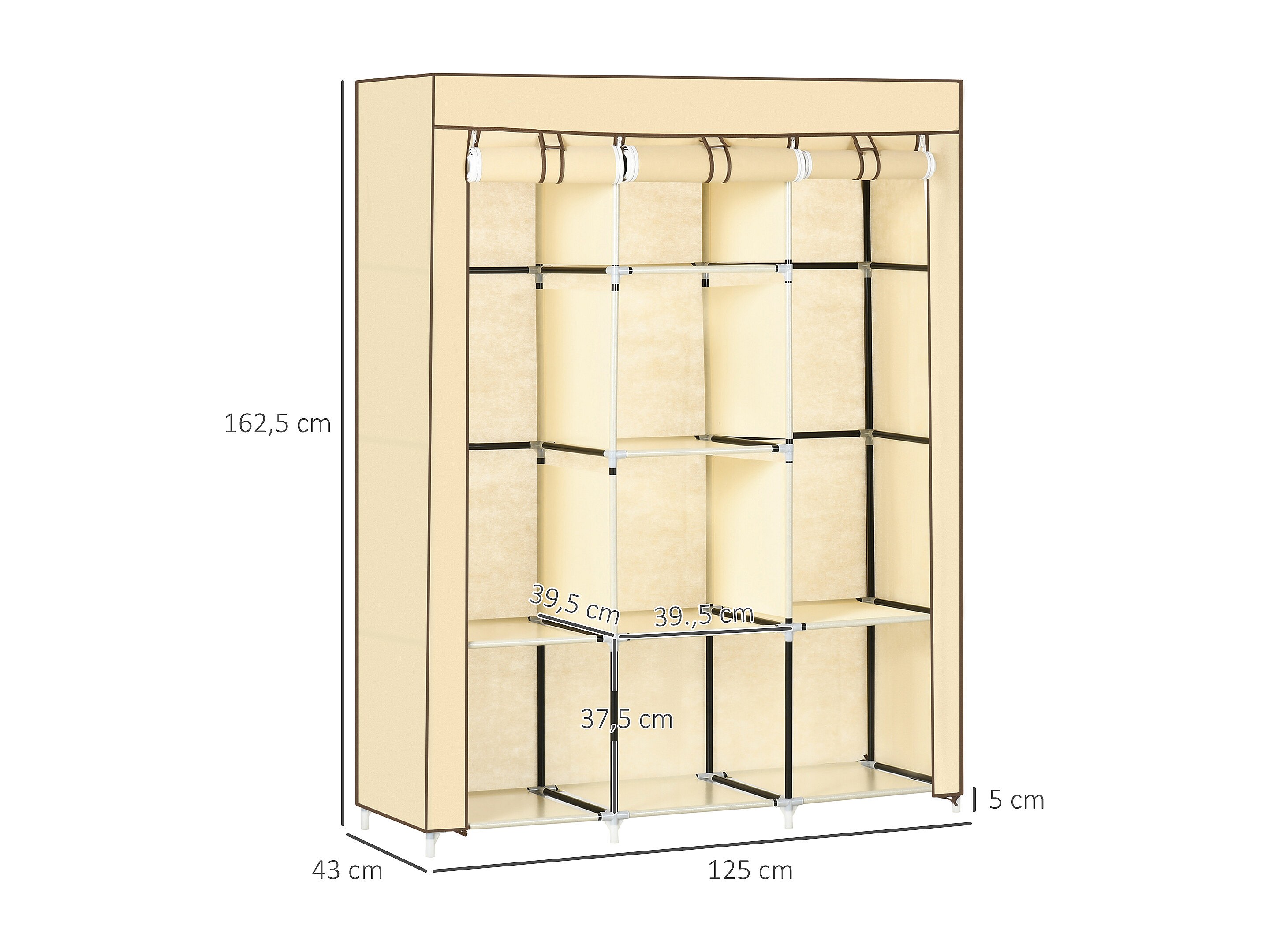 Armoire pliante en tissu beige avec 8 étagères et tringles à vêtements, 125 x 43 x 162,5 cm, pratique et gain de place pour chambre ou couloir