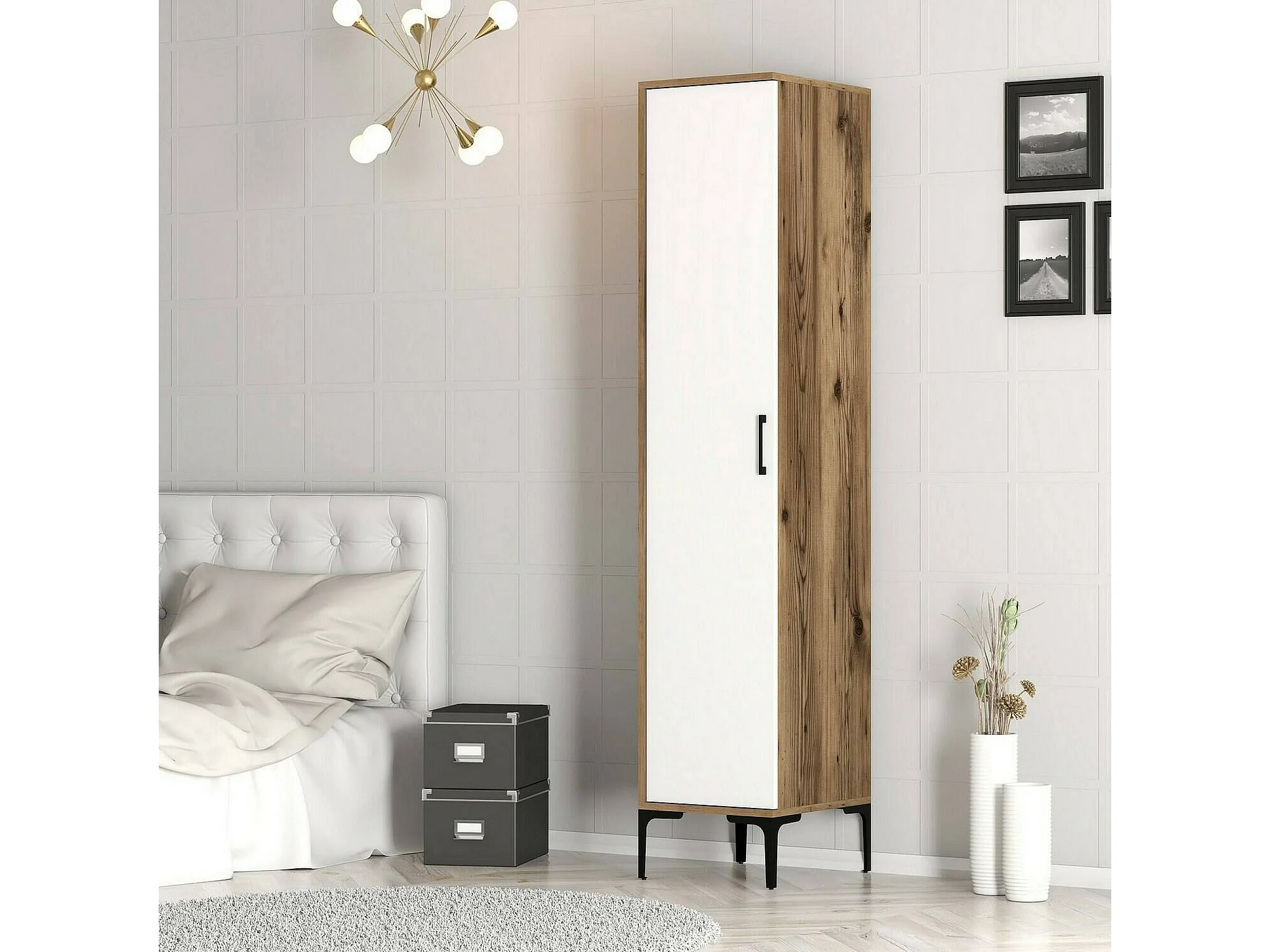 Armoire polyvalente 1 porte Dnuytinc, Meubles multifonctionnels, Casier à chaussures, Support à chaussures pour armoire, 40x201h48 cm, Noyer et Blanc