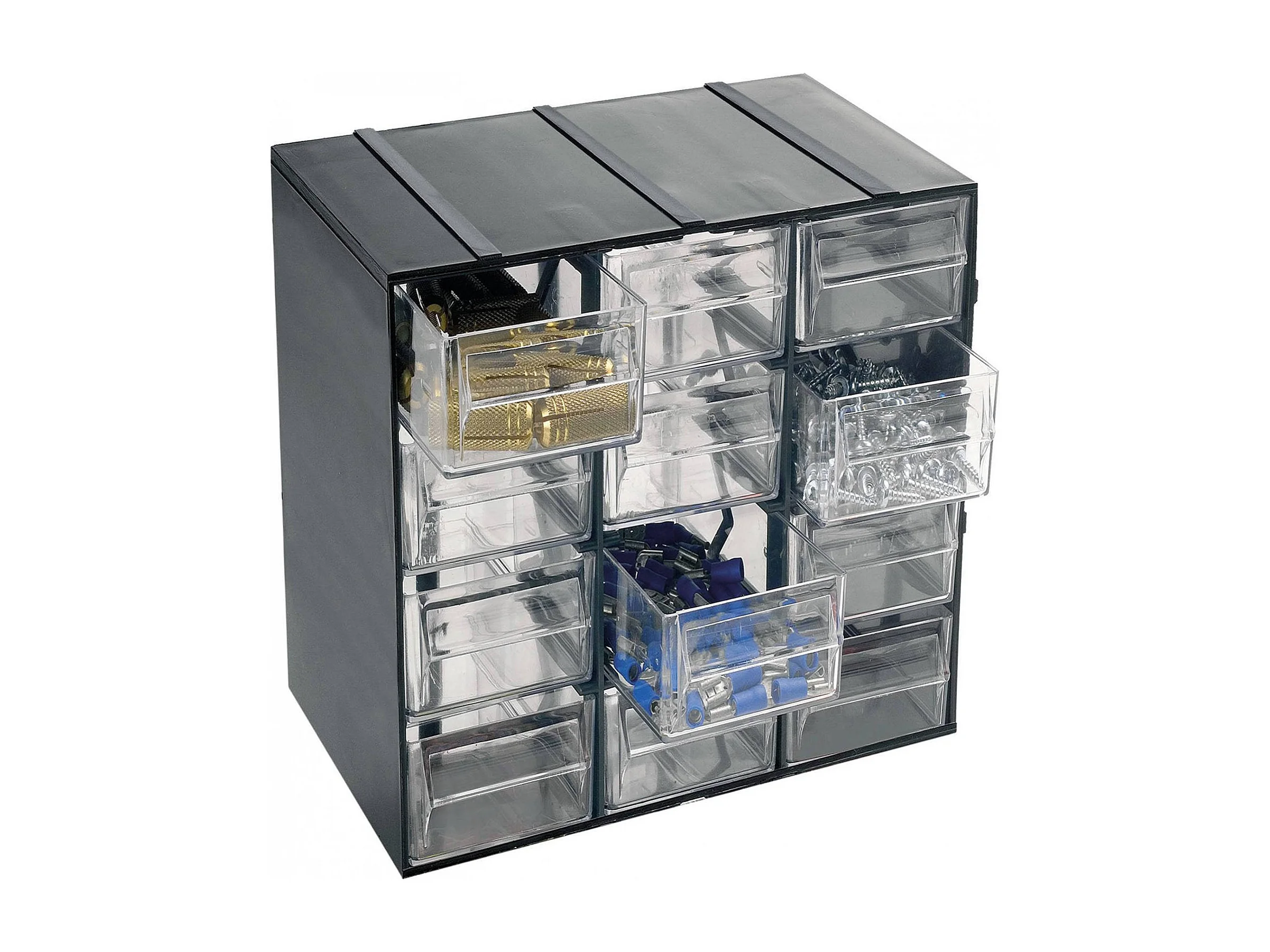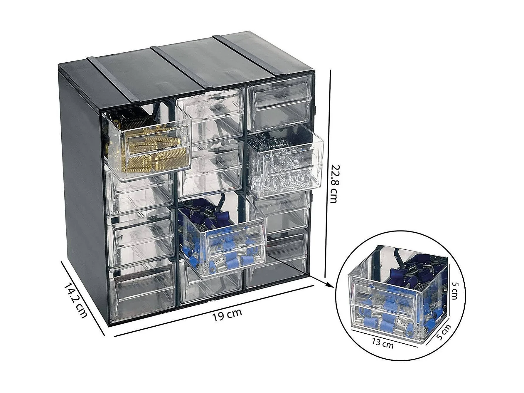 Armoire polyvalente 2 portes Dbertolin, Armoire pour petites pièces, Armoire pour conteneurs à outils, 100% Made in Italy, 19x15h23 cm, Anthracite, 24 tiroirs