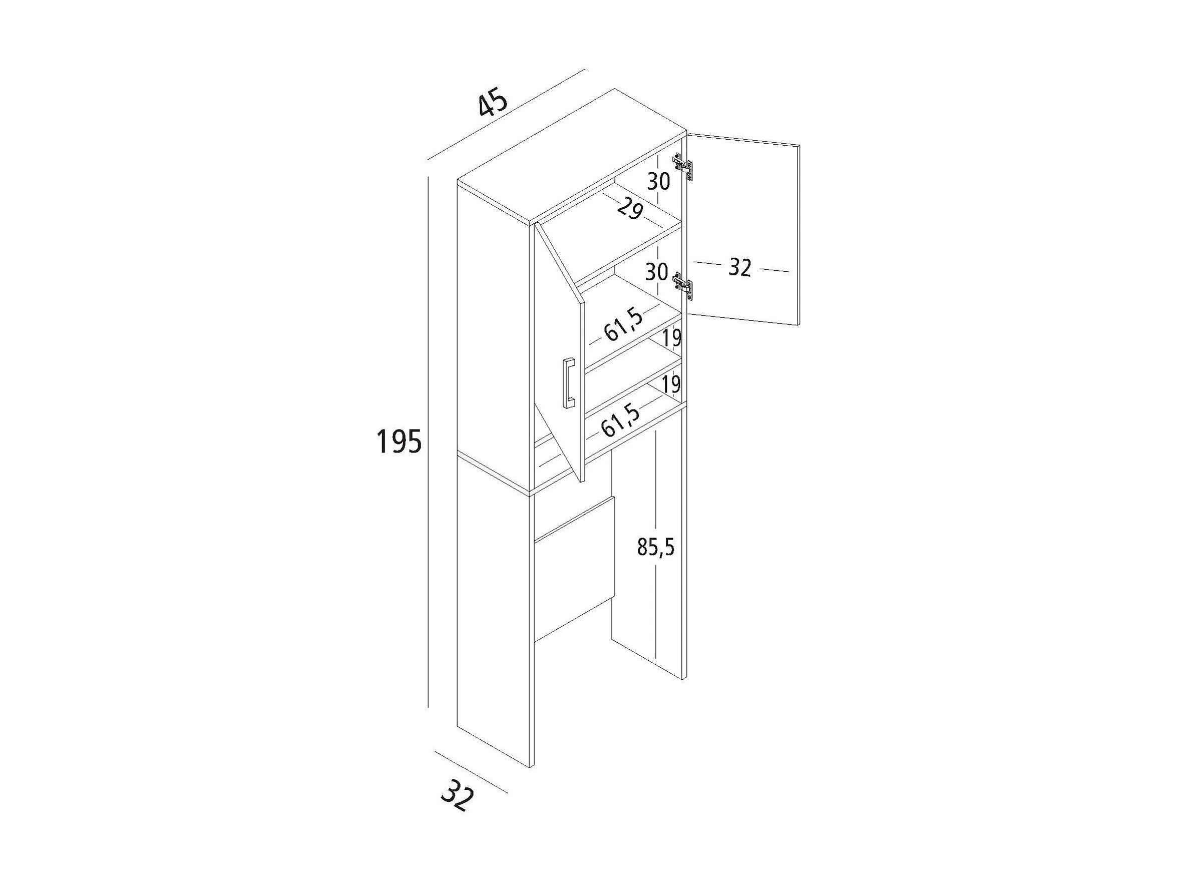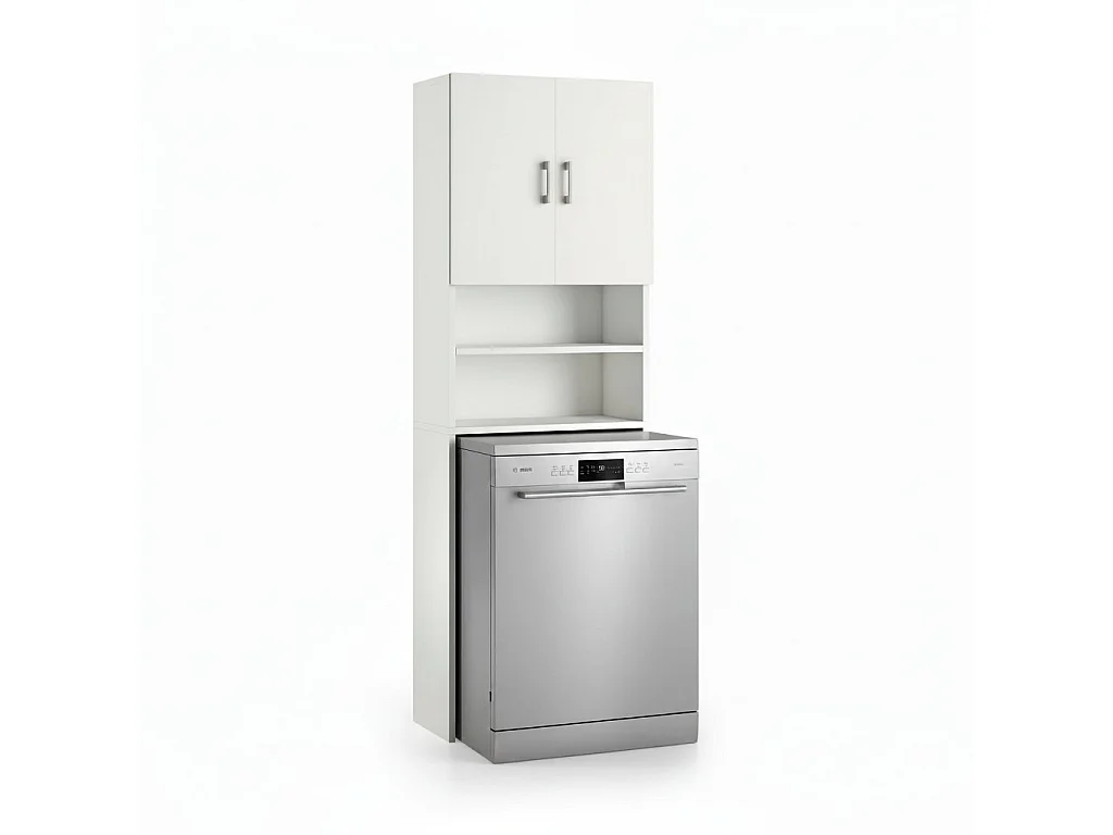Armoire polyvalente Anemone, Armoire linéaire avec 2 portes battantes et étagères, Armoire buanderie pour lave-linge, 100% Made in Italy, 65x32h195 cm, Blanc