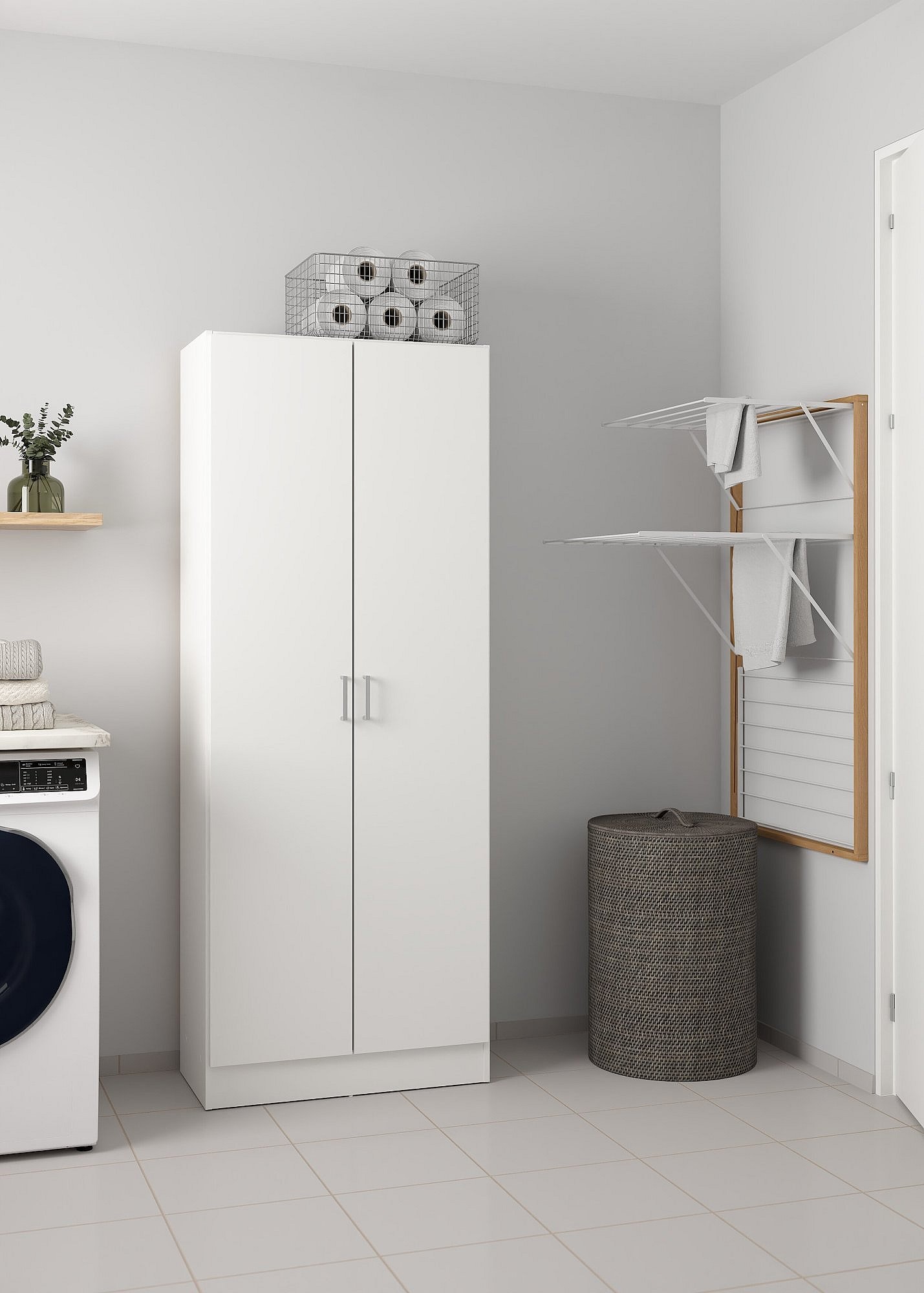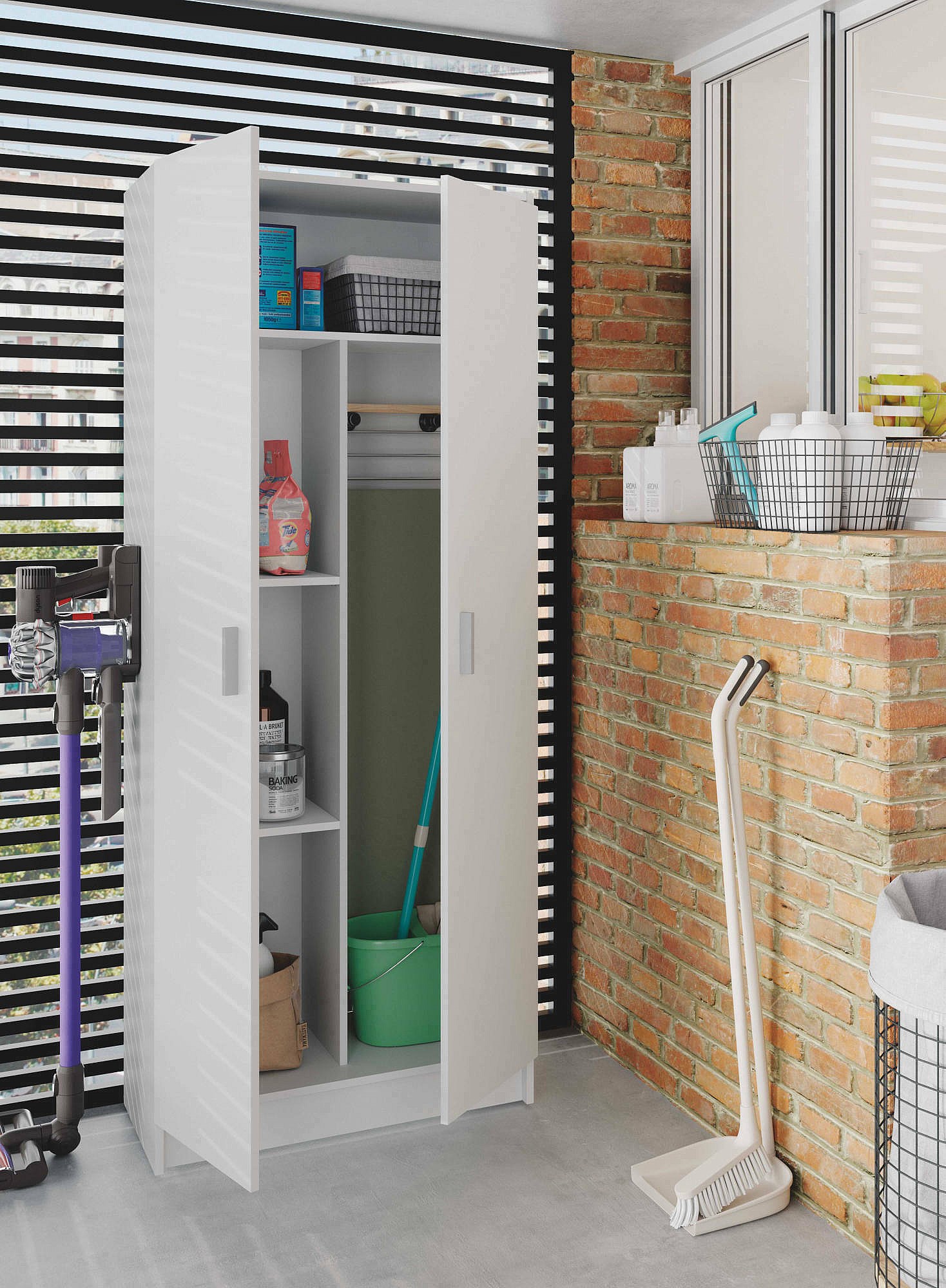 Armoire polyvalente Dabaldi, Armoire à balais avec 2 portes, Étagère à chaussures avec étagères, Armoire à balais, cm73x37h180 cm, Blanc