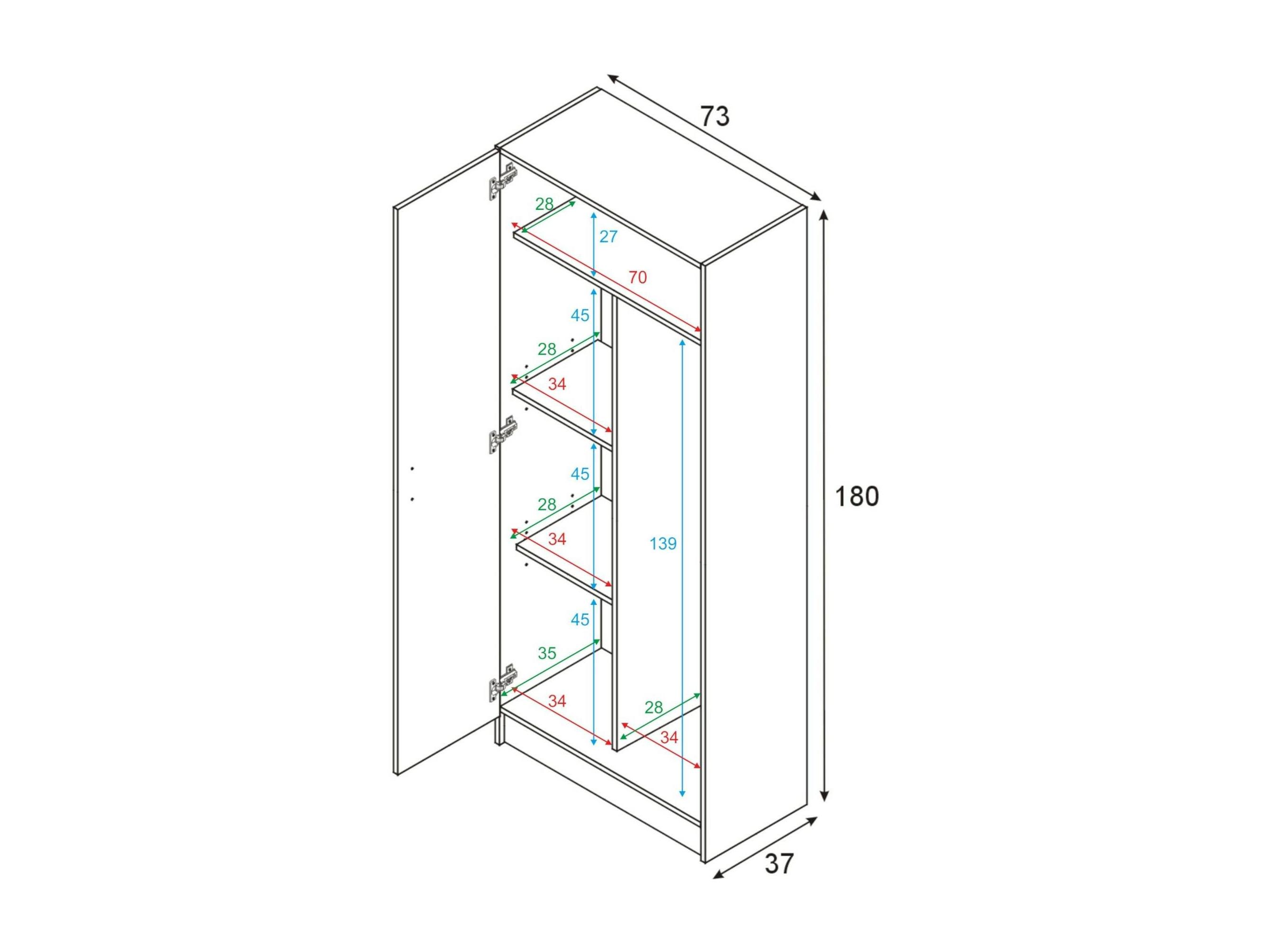 DIMENSIONS EN CM - Armoire polyvalente: Longueur: 73 Largeur: 37 Hauteur: 180