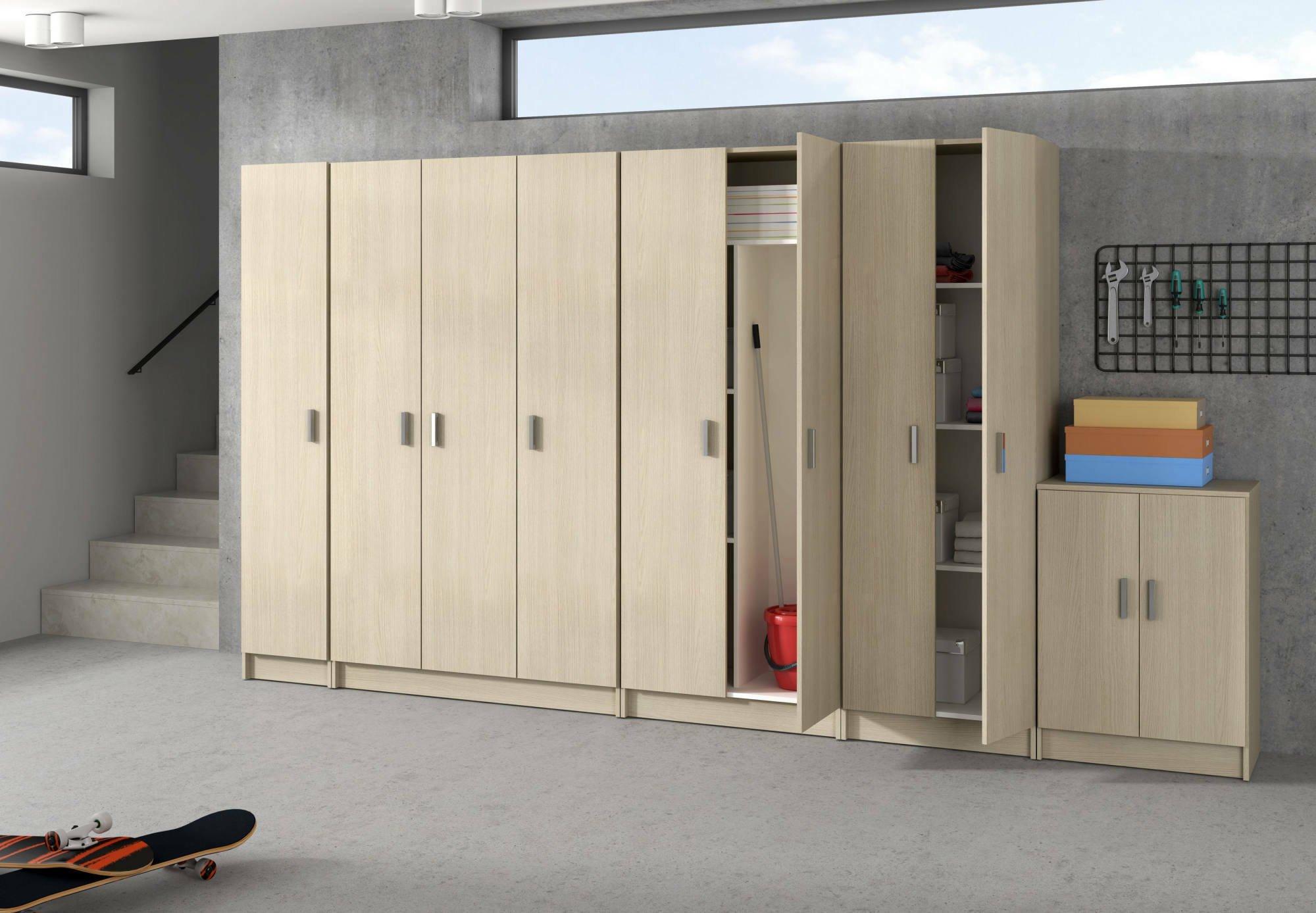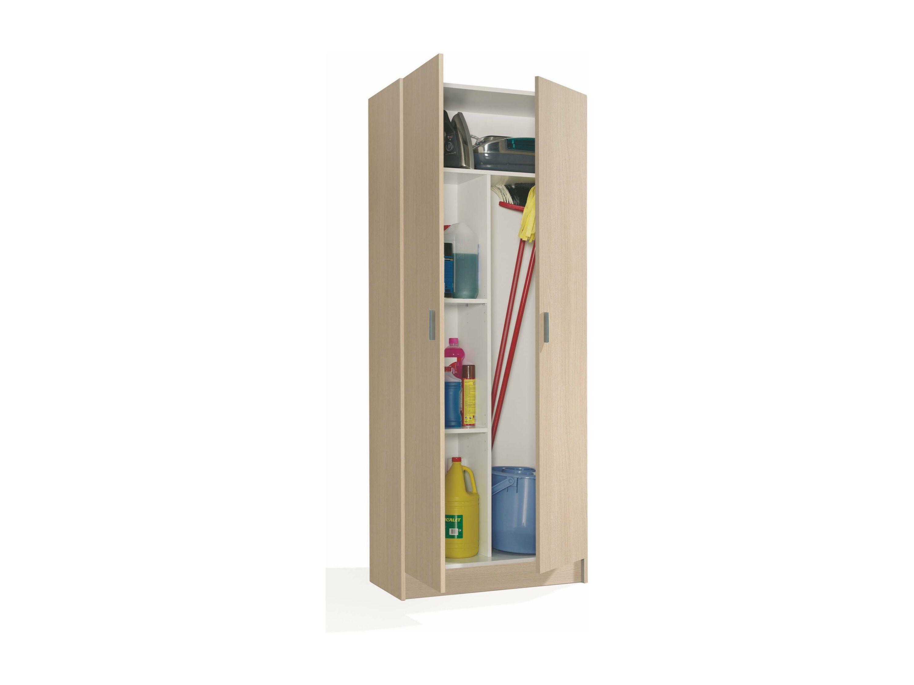 ARMOIRE POLYVALENTE - Armoire à balais avec 2 portes, Étagère à chaussures avec étagères, Placard à balai, cm 73x37h180, Chêne.