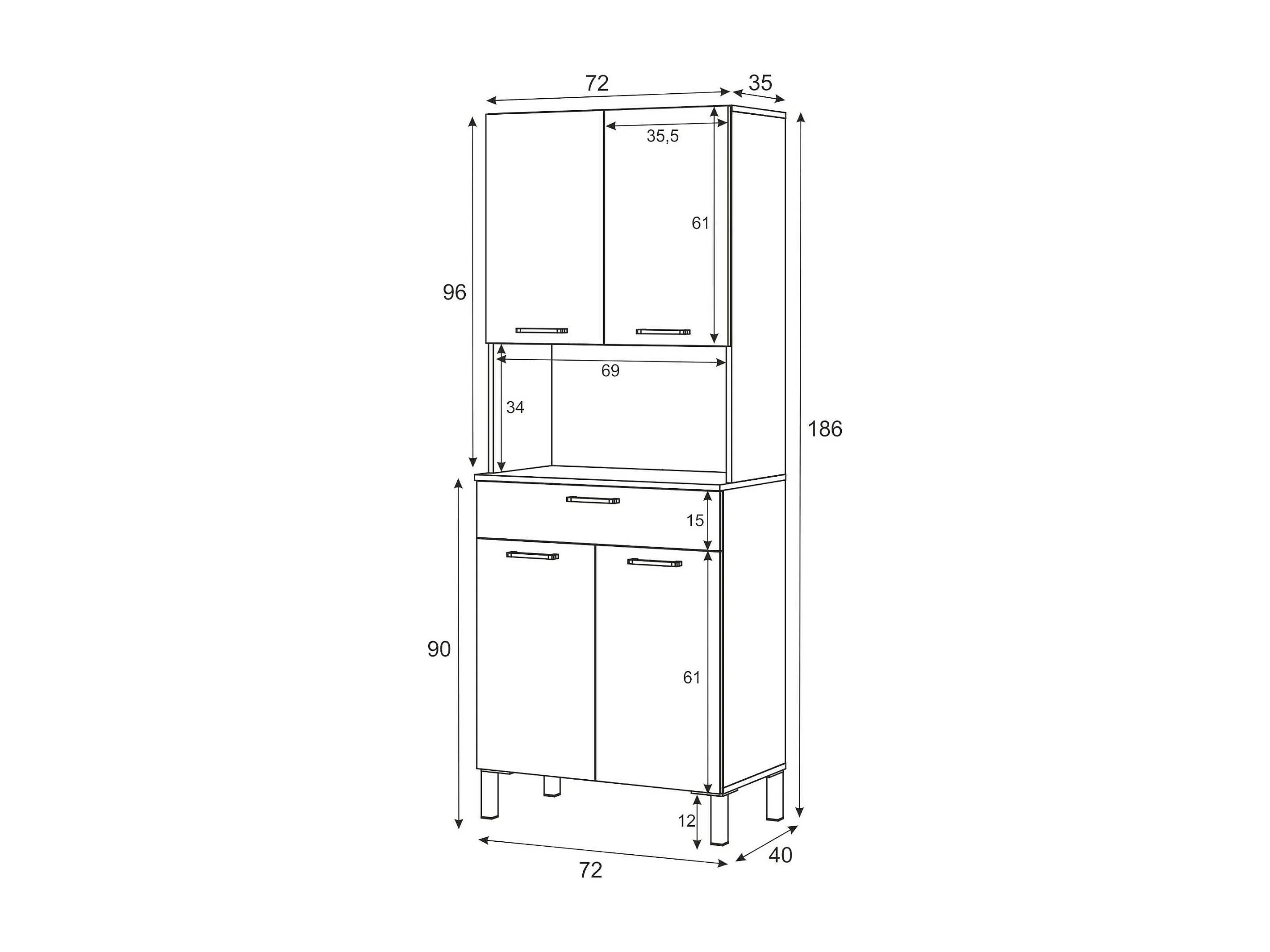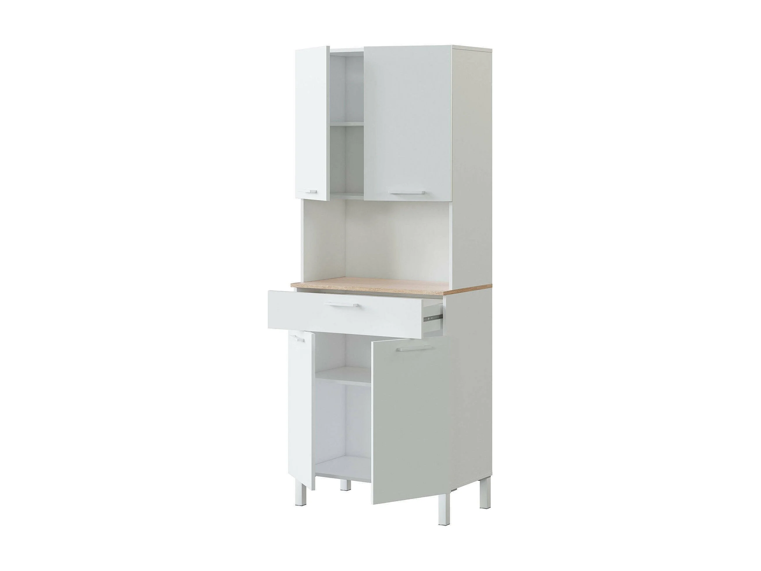 Armoire polyvalente Dbakke, Armoire auxiliaire de cuisine, Buffet avec 4 portes et 1 tiroir avec étagères, Armoire ouverte, 72x40h186 cm, Blanc et Chêne